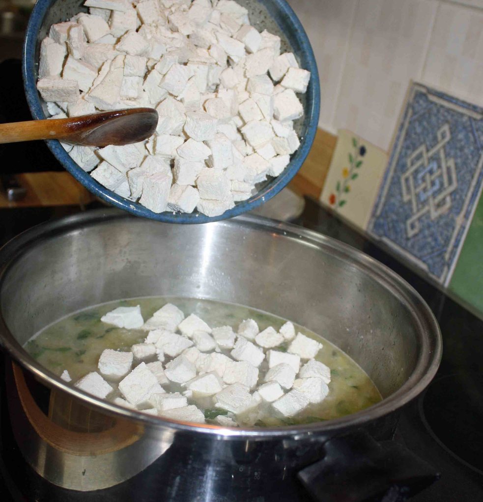 - Add the diced puffball to the broth, cover and simmer for 10 minutes