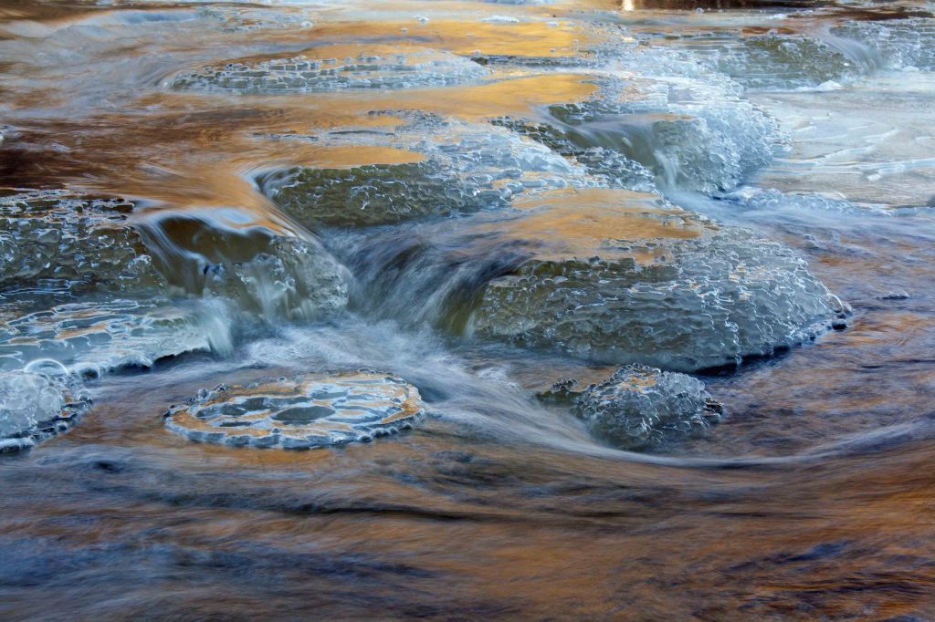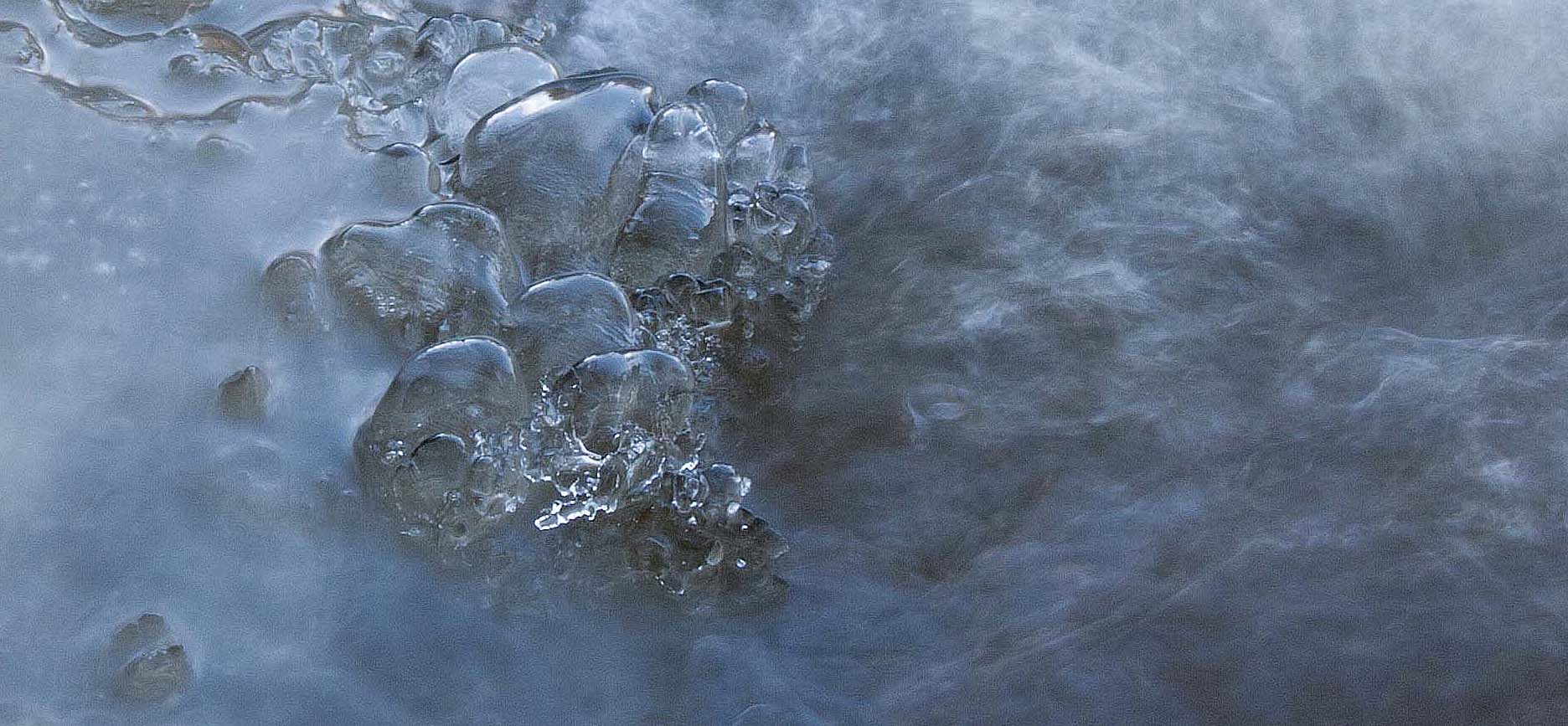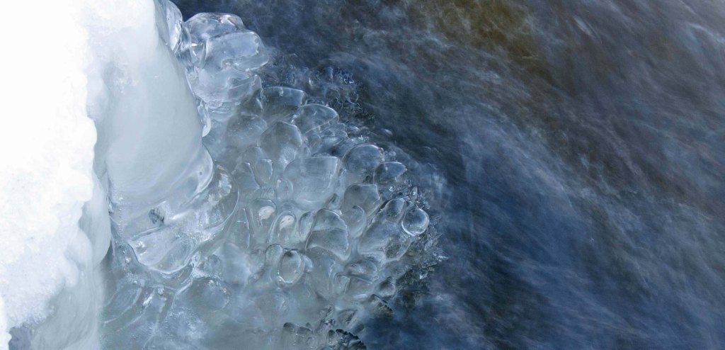 Water, ice, sky, snow: “carousels of prismatic light!” Wow!