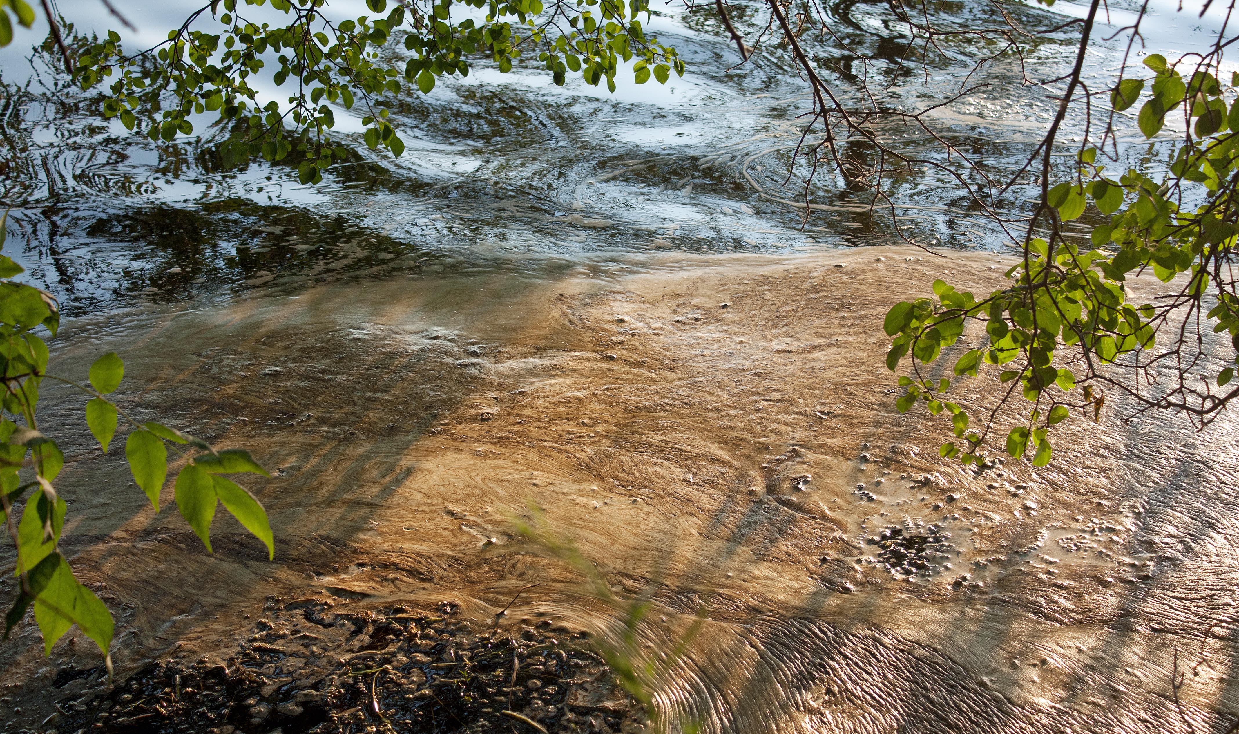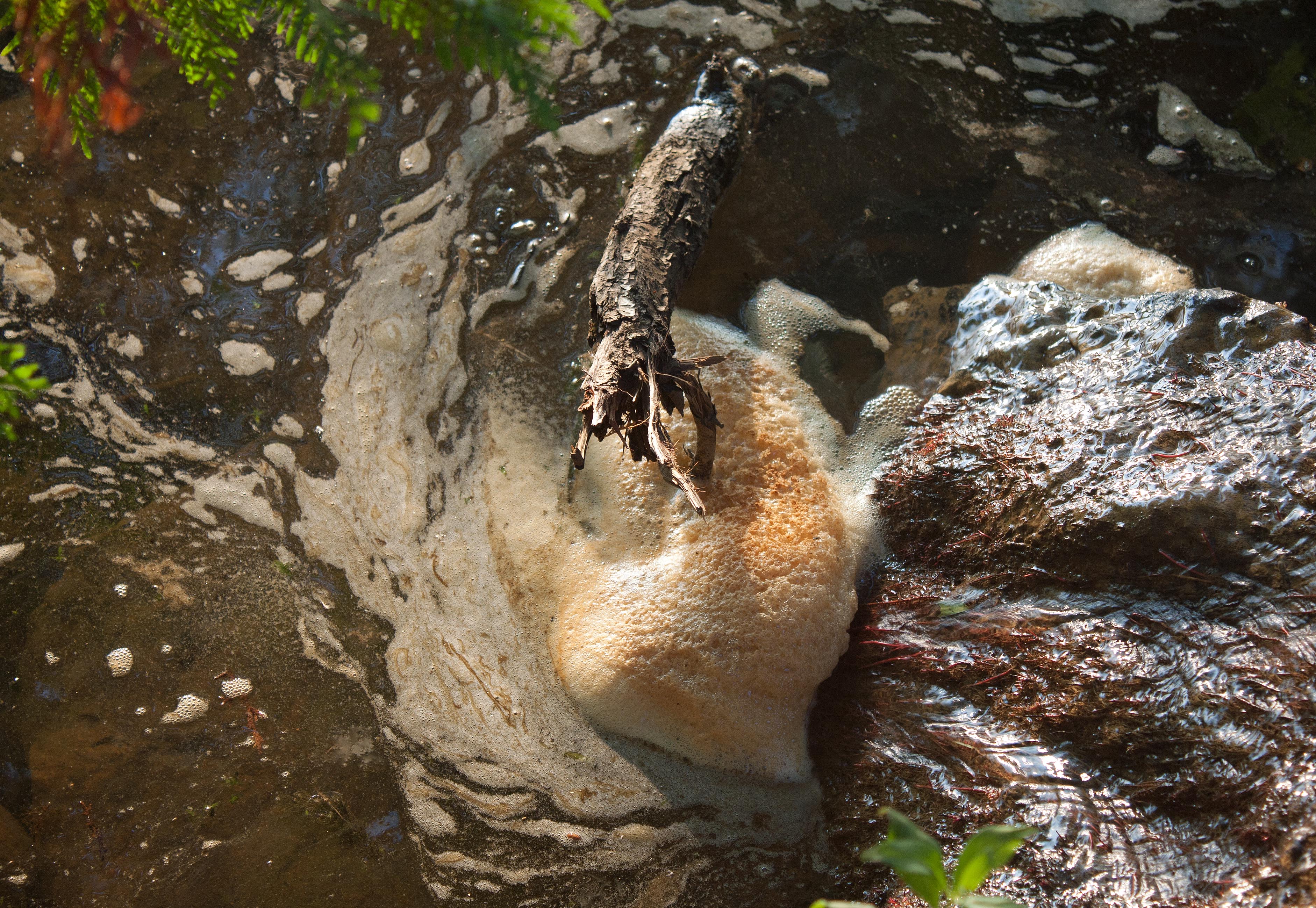 At the mouth of one little tributary to the river, foam with hints of caramel rose in a cloud of froth where the runoff tumbled into the Otonabee River.