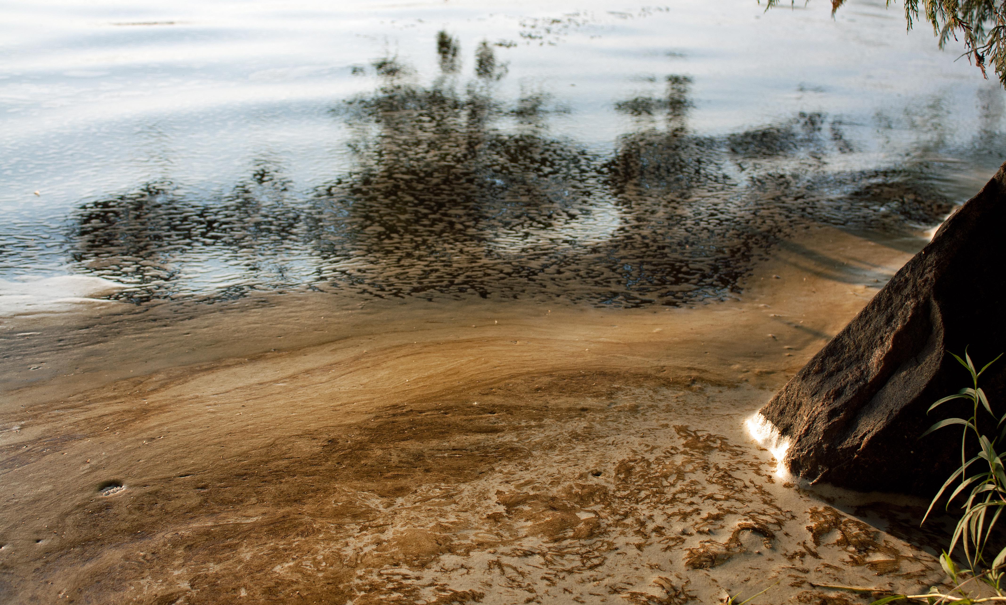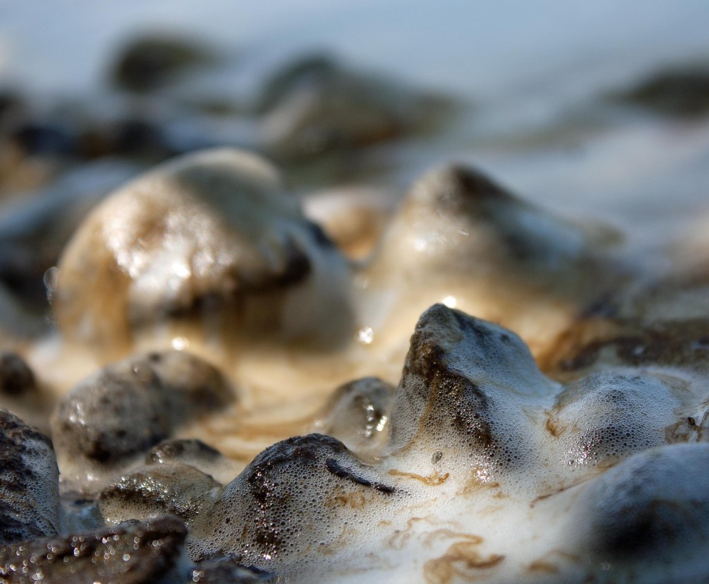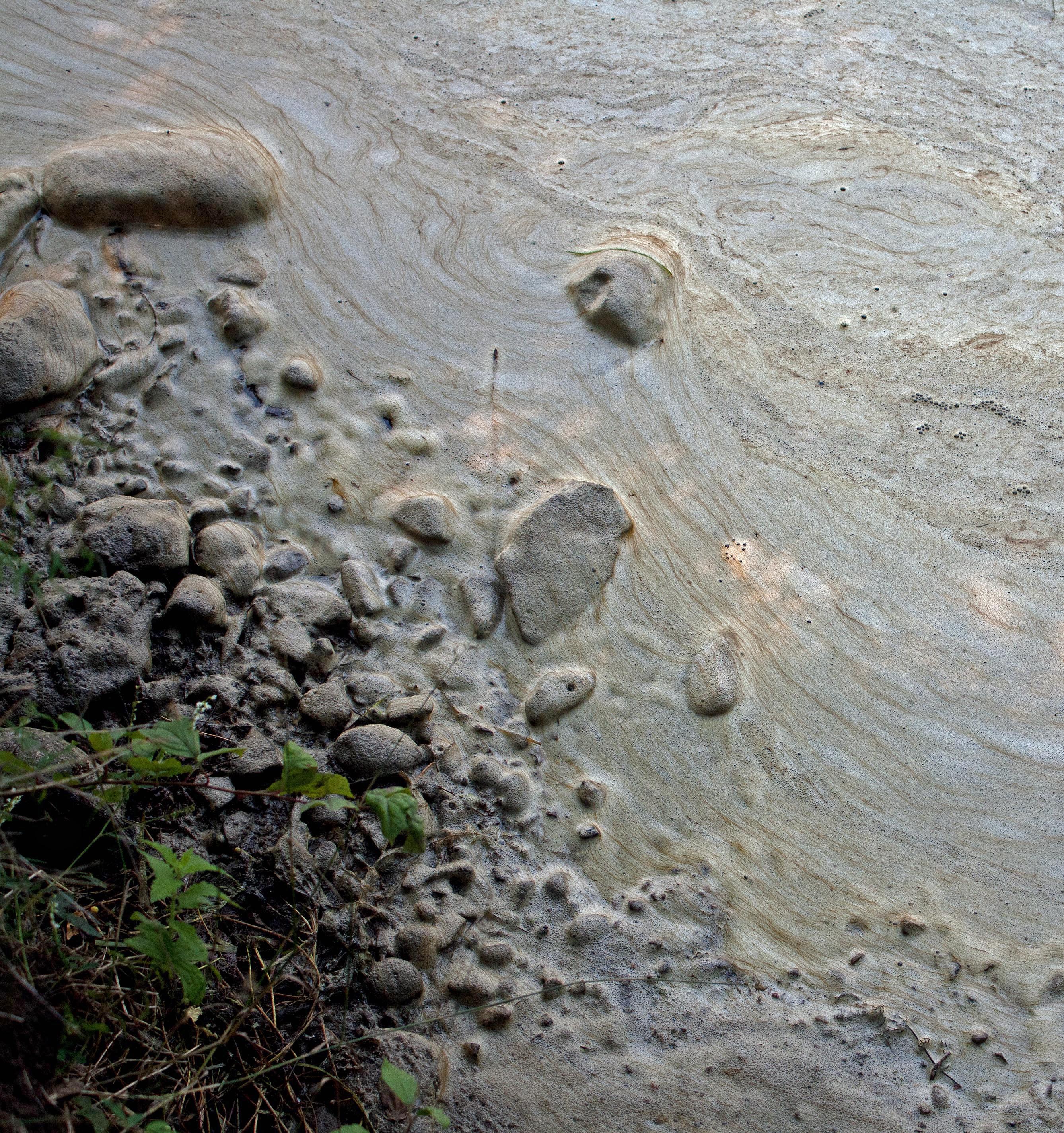 The froth had turned into a mocha-coloured micro-foam that resembled the crema of a well-made espresso. Entrained by the wind that conspired with the river’s current, the film grew into caramel ropes that covered the rocks on shore in stripy shades of delicious earthy mocha cream—a synesthete’s dream.
