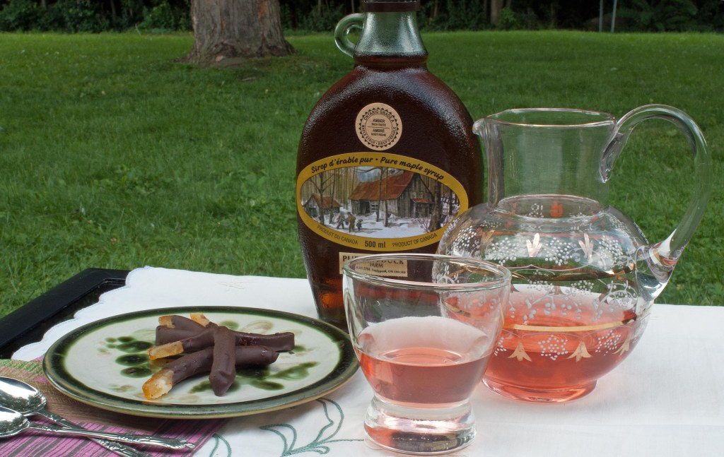 The result was a delicate peach-pink liquid that smelled like wild berries and tasted acrid but burst with citrus flavour. According to Merridy the drink smelled “like fairy petals” and tasted “rather astringent.” We both added maple syrup to our lemonade and drank again. I discerened a wider chorus of floral berry notes as the sharp acridness was subdued by the syrup. The syrup “adds spring to the summer,” Merridy said happily. I had to agree.