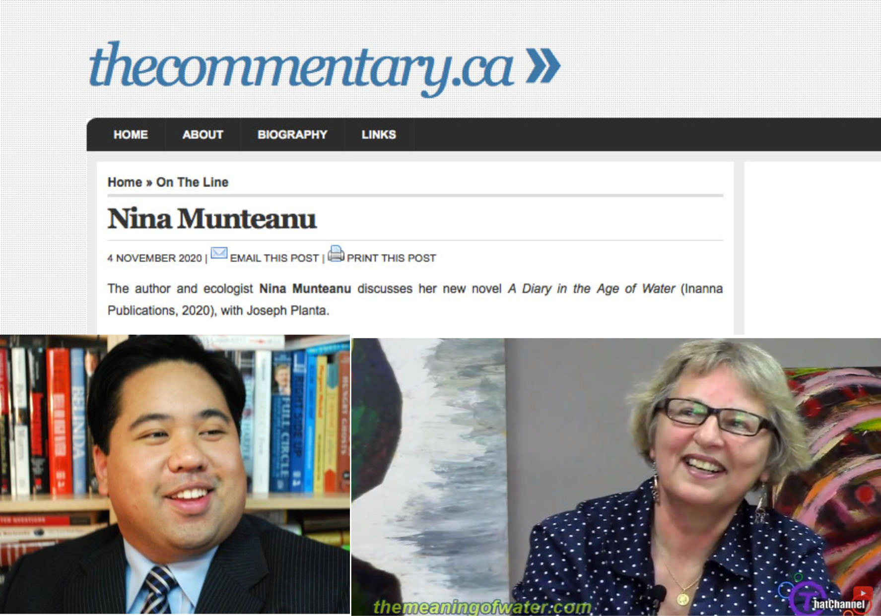 Joseph Planta had interviewed me before, when my non-fiction book Water Is…The Meaning of Water was published in 2016. He interviewed me again when my latest novel a cli-fi dystopian speculative fiction A Diary in the Age of Water was released by Inanna Publications.