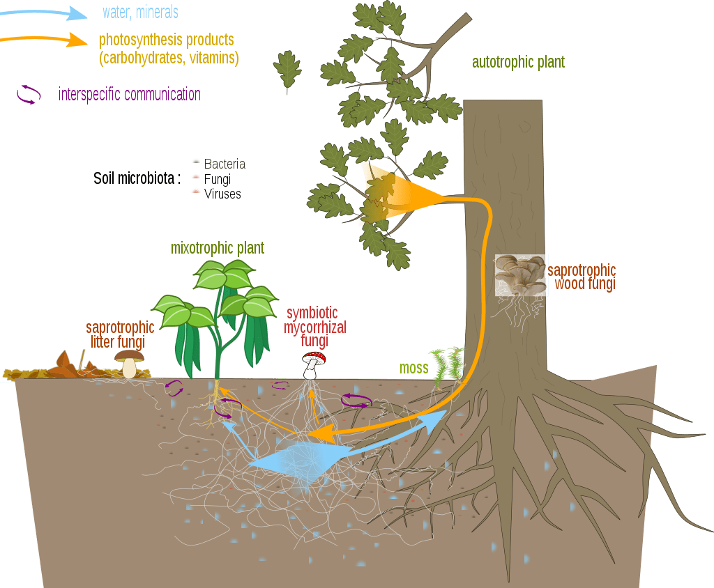 Mycorrhizae are symbiotic relationships that form between fungi and plants. The fungi colonize the root system of a host plant—in this case some cedar trees—providing increased water and nutrient absorption capabilities while the plant provides the fungus with carbohydrates through photosynthesis.