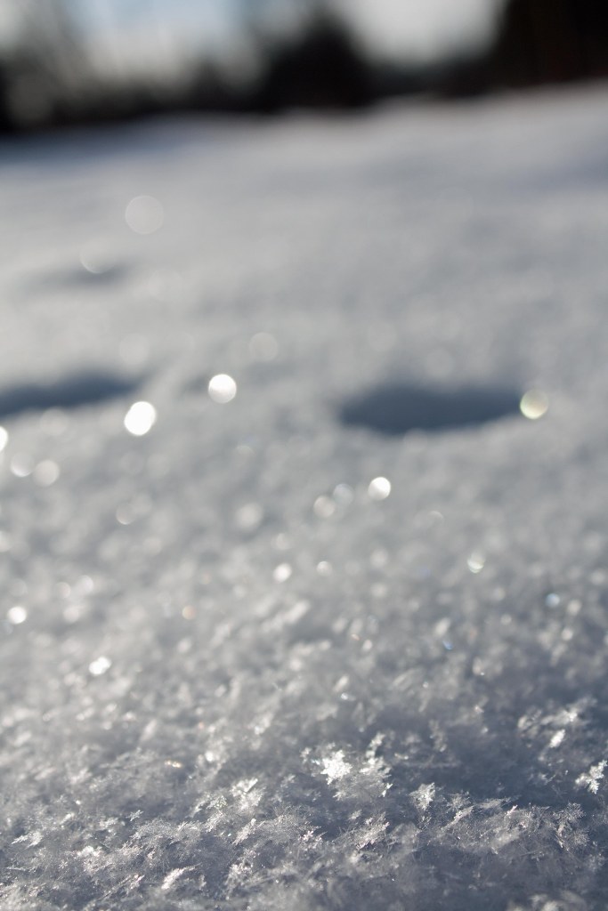 Surface hoar on snow glitters in the morning sun, ON (photo by Nina Munteanu)