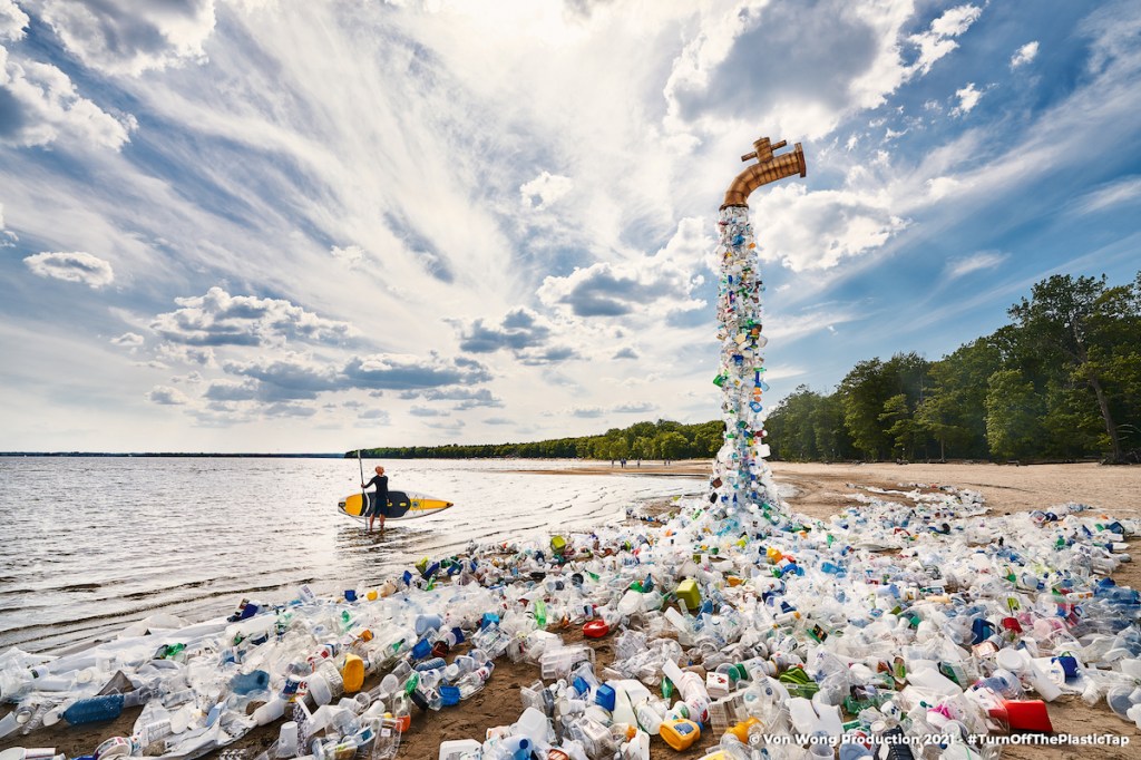 “Benjamin Von Wong’s latest art-as-activism installation looks like something Photoshopped onto reality. A large brass-looking faucet, suspended in the air, pours a river of plastic out of its spout,” writes Joe McCarthy in Global Citizen. Von Wong’s art is a vivid and powerful statement on our plastic pollution crisis.