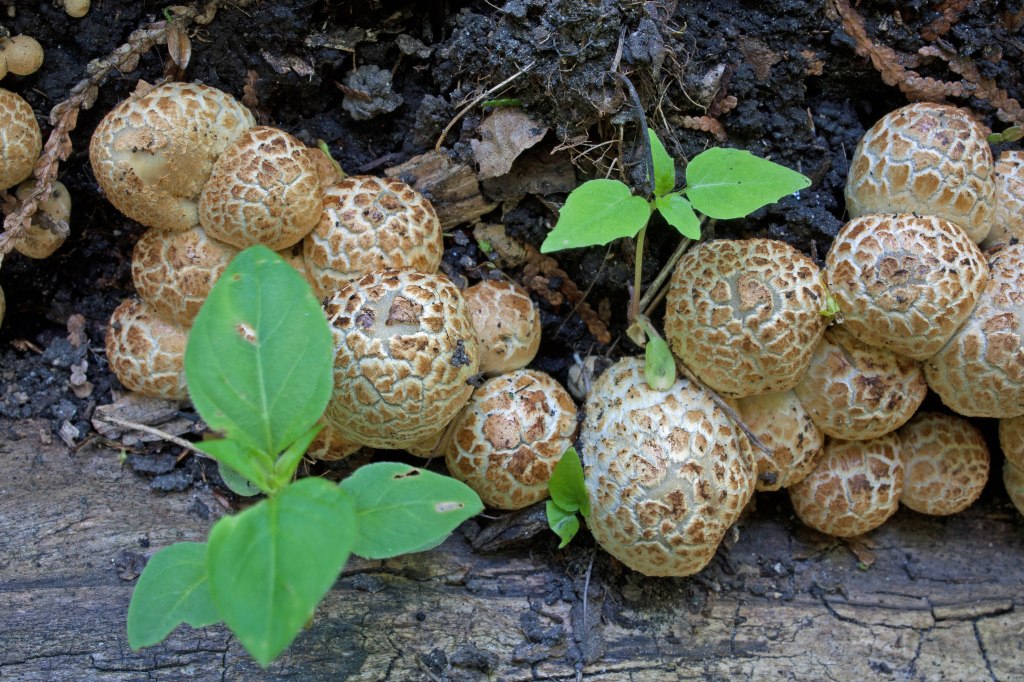 Also called Firerug inkcap, C. domesticus is a saprobic fungus, growing gregariously and in small clusters on decaying hardwood logs. Its ‘evil clone’ Coprinellus radians grows in identical habitat and looks identical to C. domesticus—so much so, that some consider them one in the same. Mycologists differentiate them by spore size alone.
