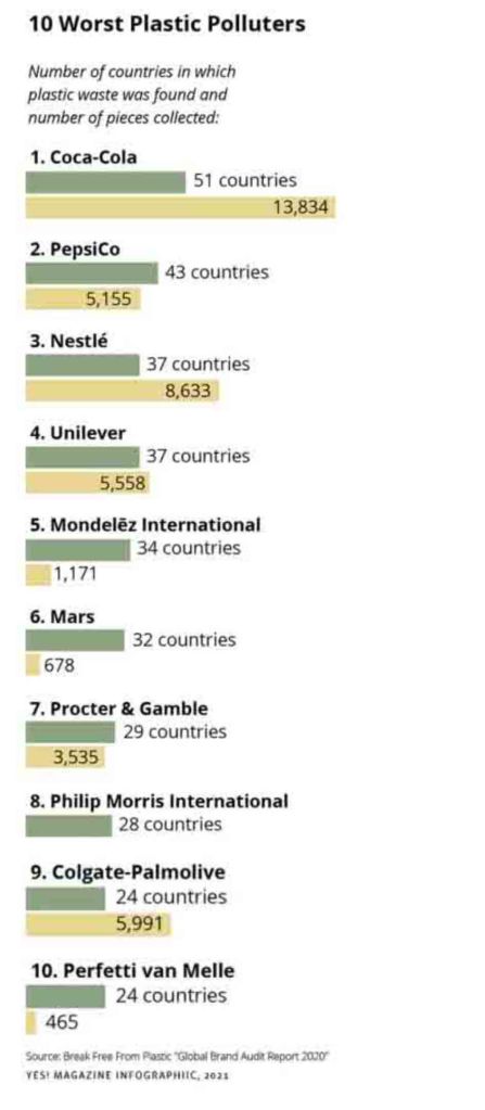 “For decades, the world’s richest countries have paid other countries—most often nations in Africa, South Asia, and Eastern Europe—to accept enormous quantities of their populations’ plastic waste for recycling,” writes Erica Cirino in the Summer 2021 issue of Yes! Magazine. However, most or this plastic is not recycled; it ends up dumped, often burned in neighbourhoods with the same characteristics as those places where the plastic is made: low-income regions. Fifty percent of plastic waste collected for recycling is traded internationally. The United States sends plastic scrap to 89 trade partners, mostly in poorer countries and much of that ends up in the major rivers that lead into the ocean, contributing roughly eight million metric tons of plastic waste every year.