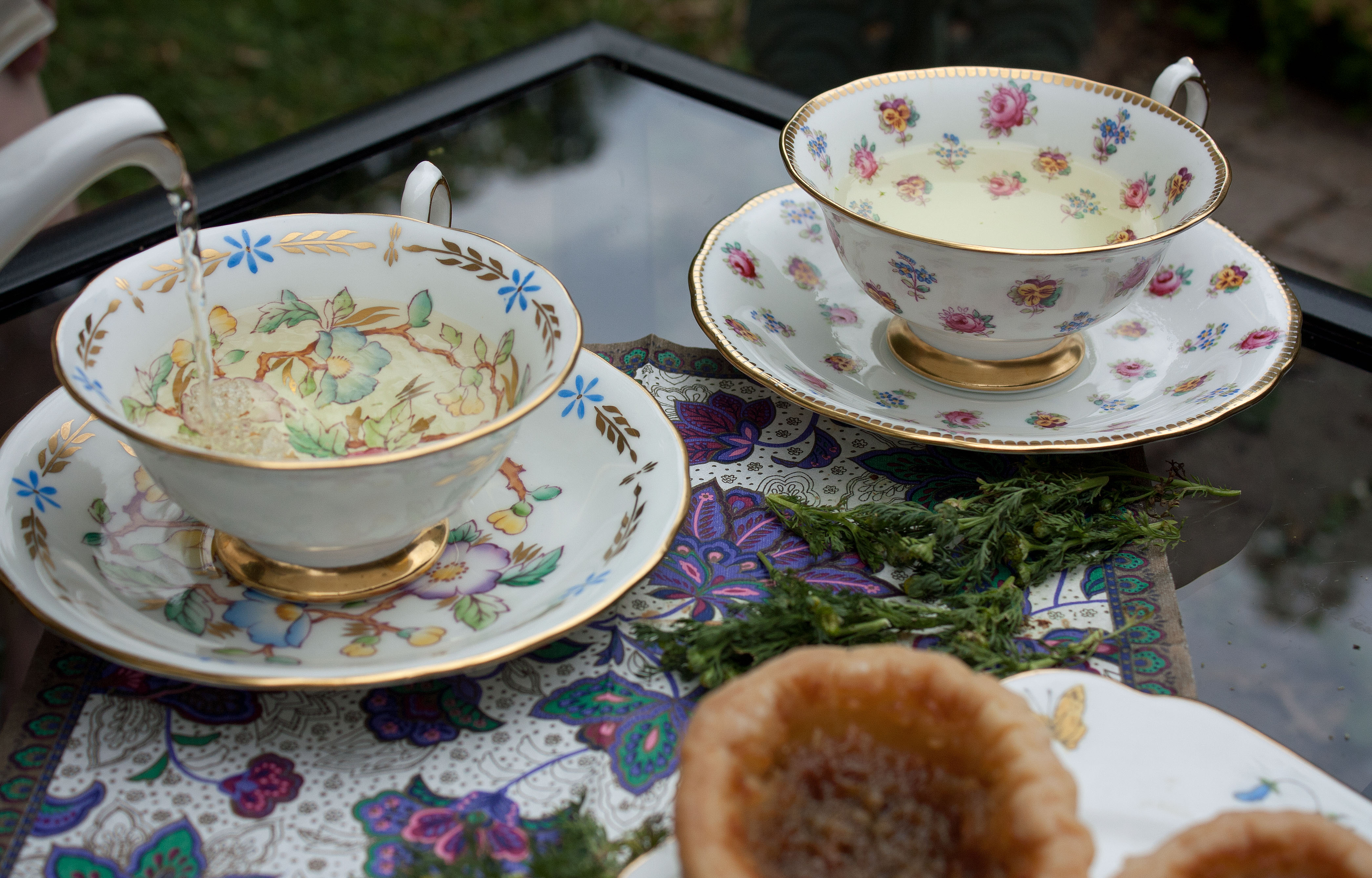 My naturalist friend Merridy offered her Grandmother’s lovely tea set for the tea along with tasty butter tarts from Doo Doo’s Bakery. When it came time to pour the tea, it was the colour of hay on a late summer day and had the sweet fragrance of pineapple. The pineapple taste lingered in the tea and I was instantly transported to my childhood home.