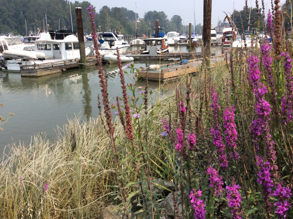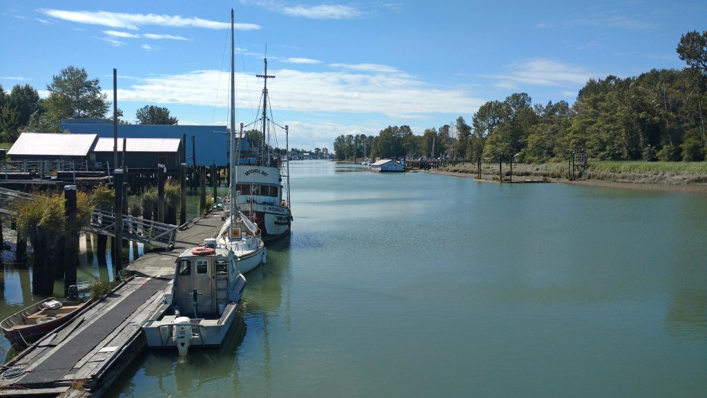 A perimeter dyke trail connects Ladner Lagoon with Ladner Harbour Park, known by locals as “Bunny Park.” I often visited this park with my young son to watch the rabbits and walk the local forest trails, such as Swenson Walk, often frequented by bald eagles (looking for breakfast, no doubt). The site is a historic feral rabbit sanctuary and in 2012 over 500 wild rabbits that had crowded the Delta Municipal Hall (the result of generations of abandoned pets) were relocated to Ladner Harbour Park. To get there, we crossed Harbourview Bridge from River Road onto Mcneelys Way with views of the harbour at Ladner Boat Basin.