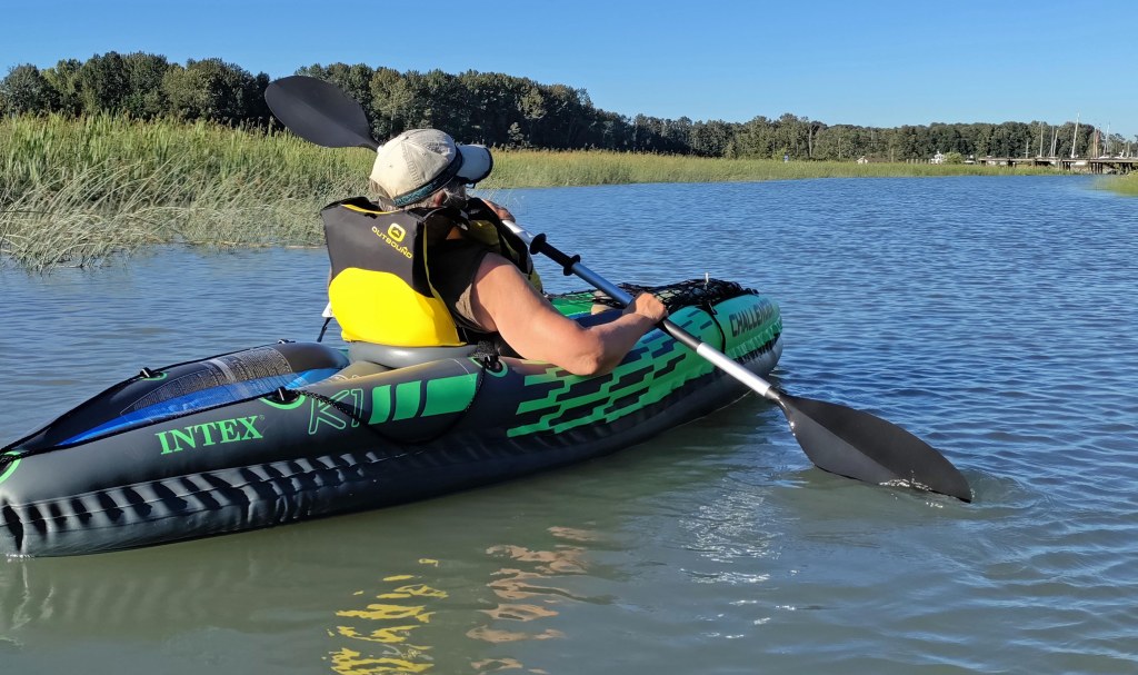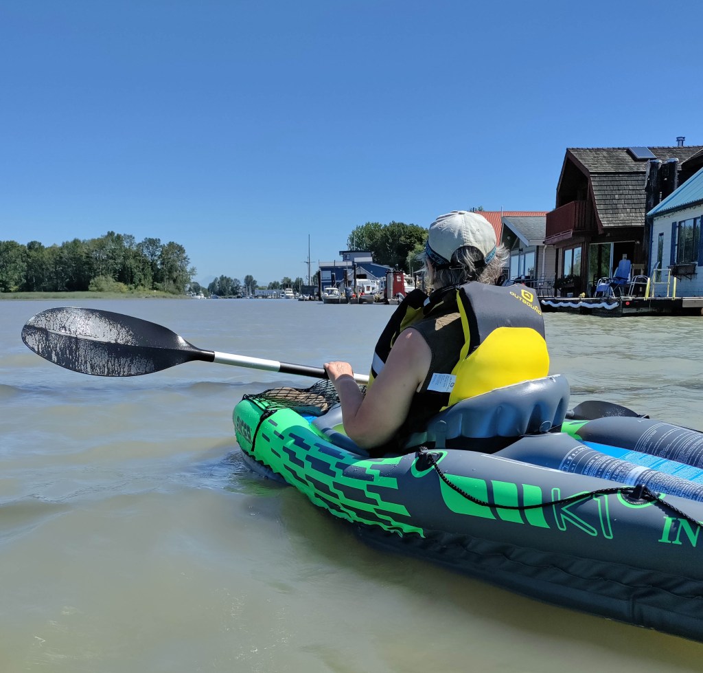 The kayak rental company brought the kits in two large bags to our doorstep in the morning. We then launched at the boat dock near Sharkey’s Seafood Bar & Grill in downtown Ladner. The kayaks were Skookum inflatables with easy instructions to set up and inflate. Within twenty minutes we were ready to go.