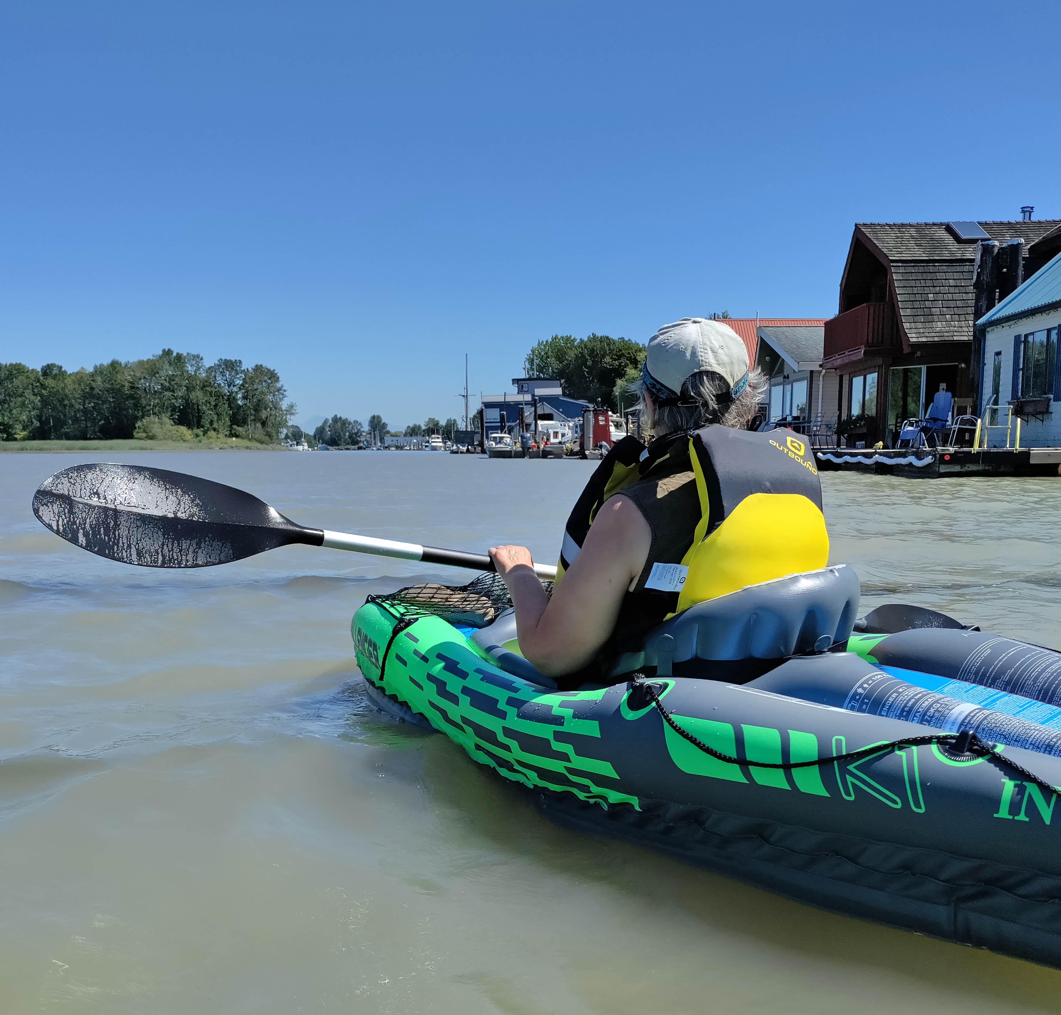 This was great news. I hadn’t kayaked in the ocean since I’d left BC years ago. I was back in the village of Ladner, on the Fraser River estuary, visiting my family and friends for the first time since COVID-19 restricted me from travelling. Good friend Anne Voute and I sat in her kitchen in Ladner, thinking of neat things to do in the area. Kayaking the Fraser River and estuary suddenly became a reality.