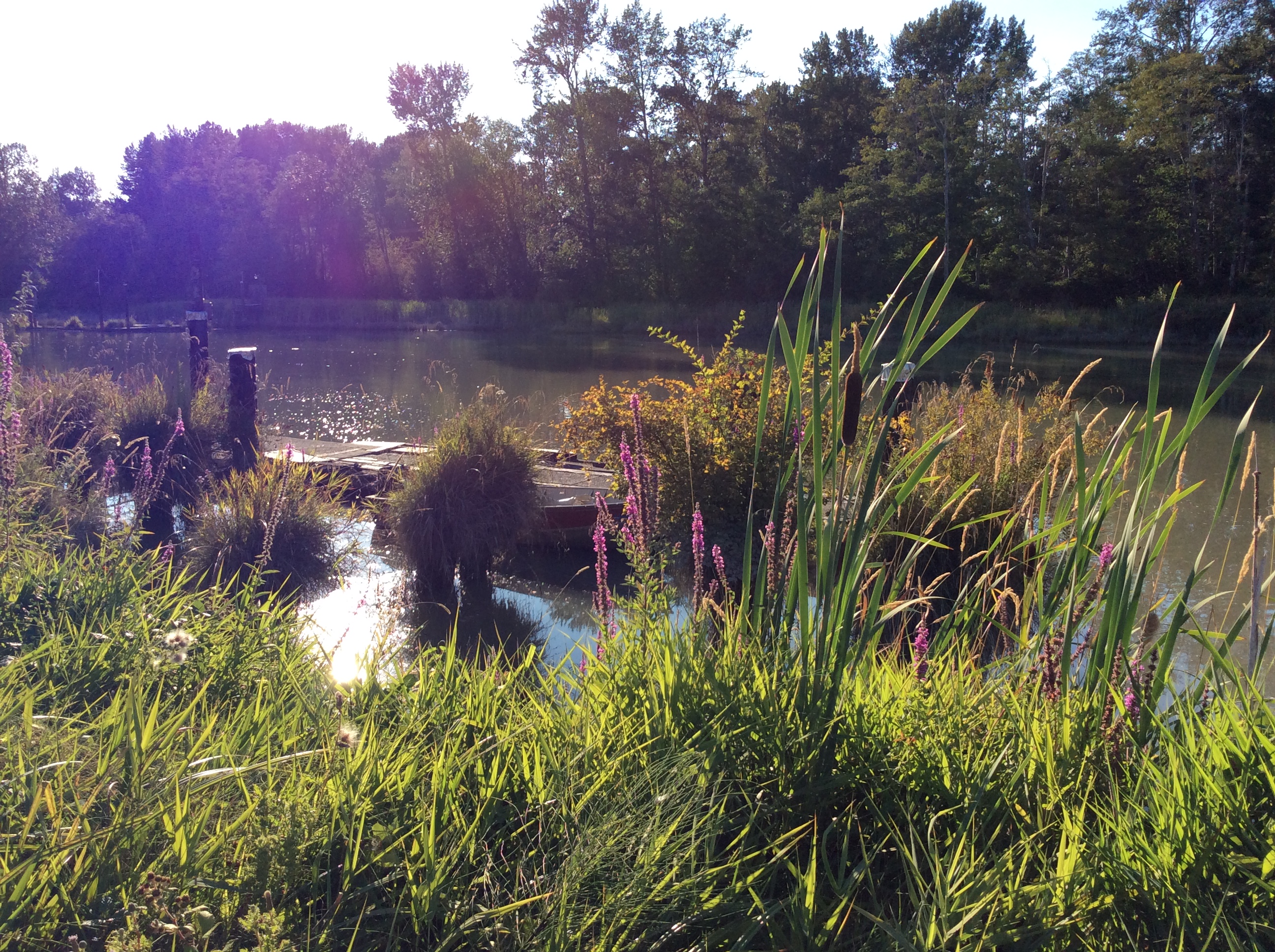 When I lived in Ladner, I often took the Ladner Marsh loop trail through the tall cottonwood forest. The park trail is located on the banks of the storm water treatment marsh with a boardwalk section and covered viewing tower that overlooks the marsh and the Fraser River.