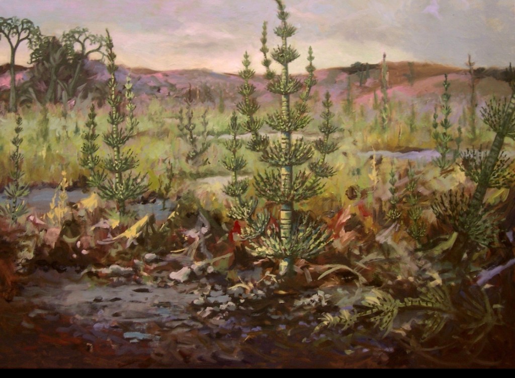 These sphenopsids lived in the steamy ‘equatorial’ rainforest swamps that covered the vast continent and coastal shallows of tropical Laurasia (Europe, Asia, and North America) and Cathaysia. Warm and humid coastal shallows accumulated large amounts of peat, rich in stored carbon.