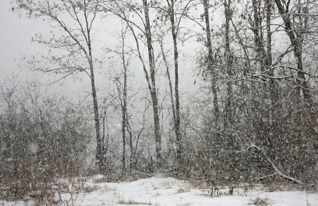 Several days ago when a heavy snow started in the morning, I put on my crampons and walked along the paths that were sheer ice beneath new snow (treacherous for anyone else, but not me!) The snow came down in huge clumps of flakes and I was totally covered in snow within a few minutes.