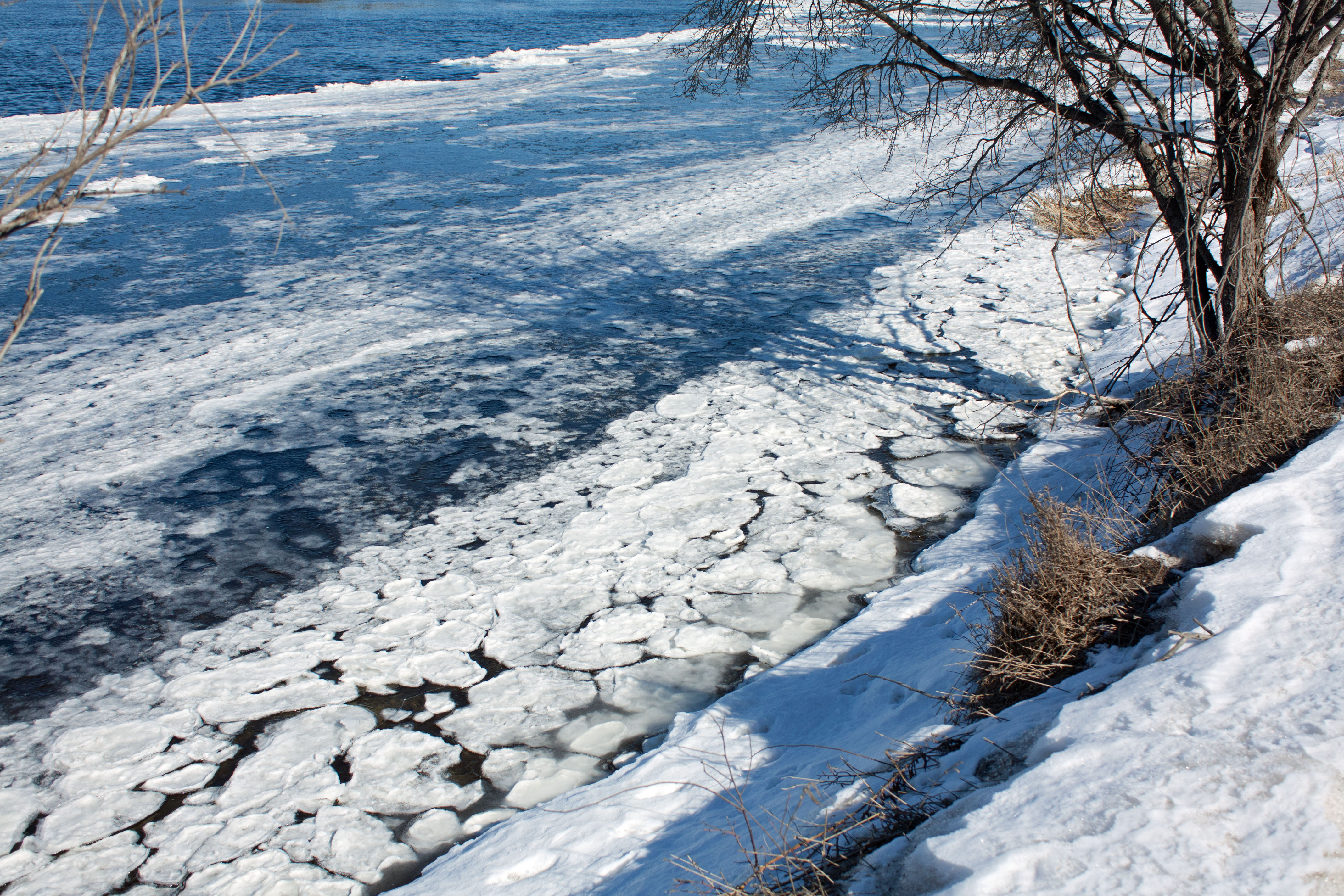 This whole process is all so fascinating, particularly given that the very next day, the patterned ice sheet might all melt back to water only to start all over again. Nature is so dynamic and no place more than the flowing waters of a river over the seasons.