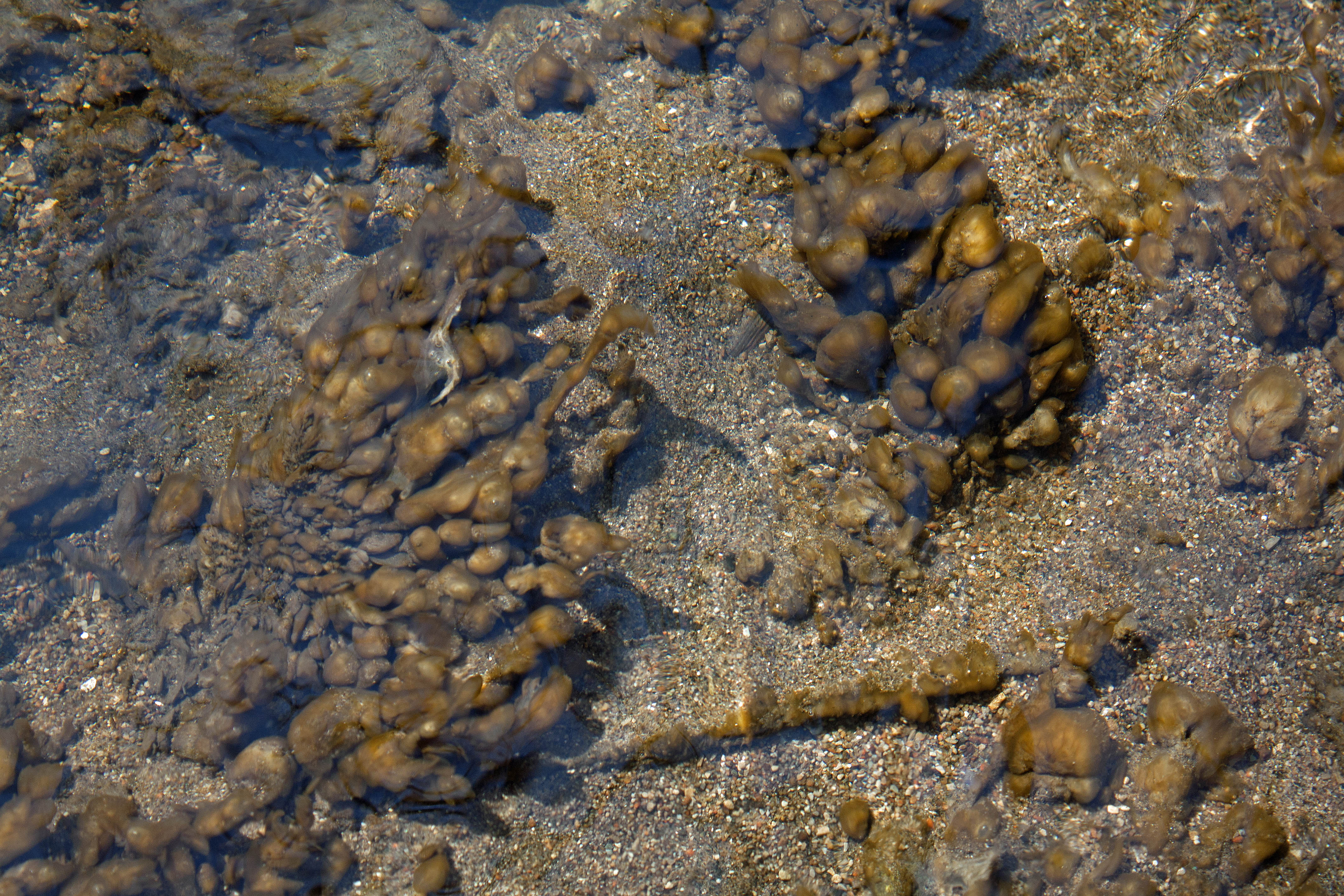 I noticed that the golden algae ‘bulbs’ colonized both the sand-gravel stream bottom as well as the rocks and cobbles. In both cases they formed ‘bulbs’ that swayed in the current, enabling them to capture more light in the partially shaded stream