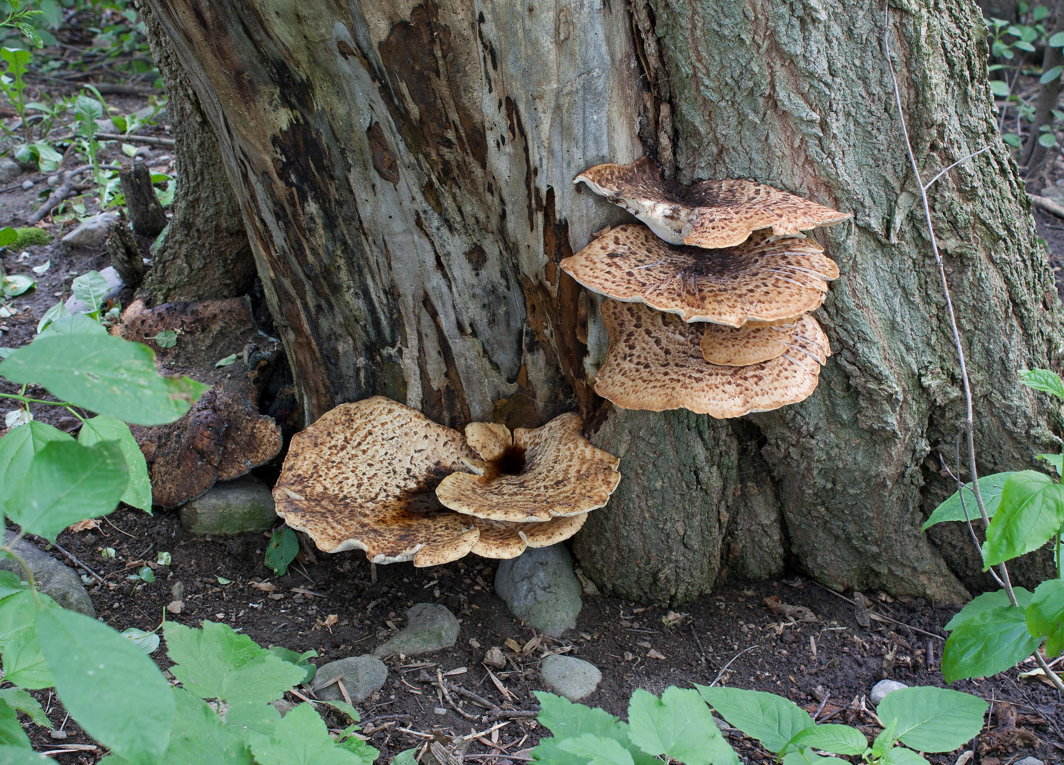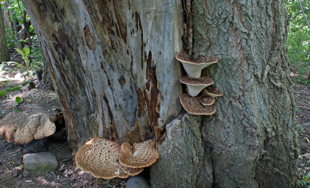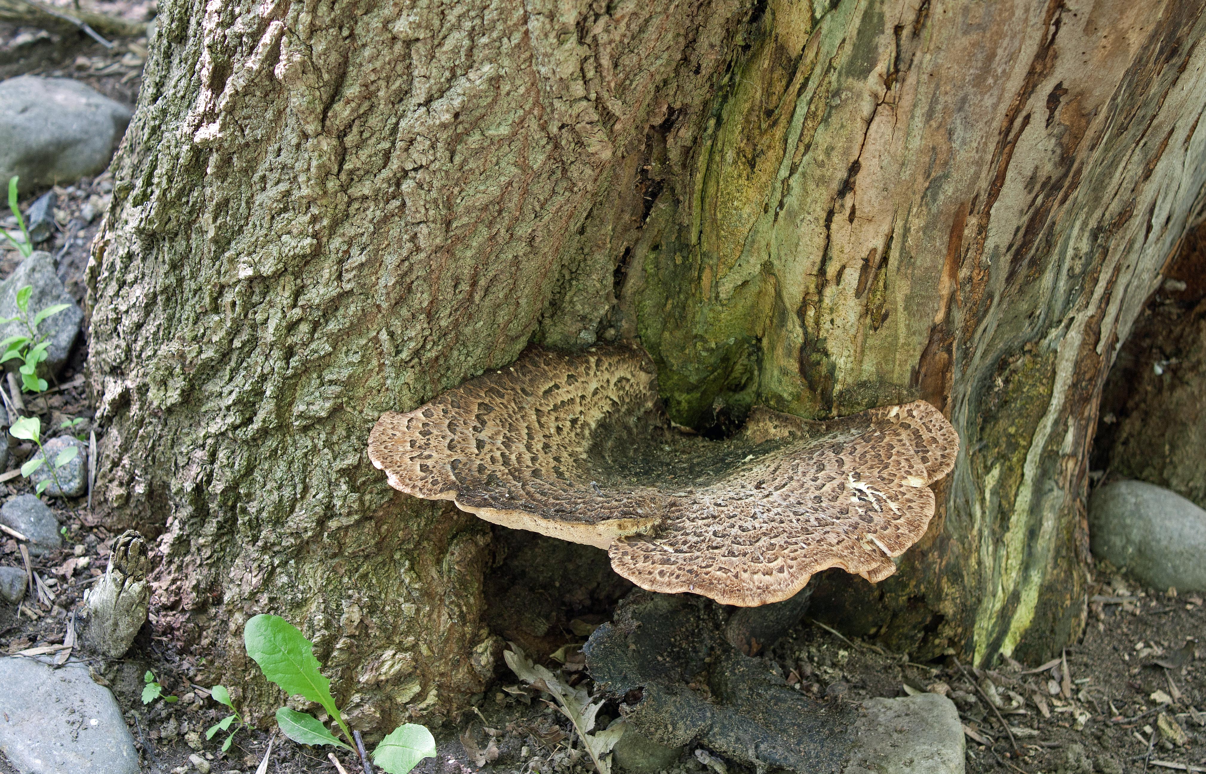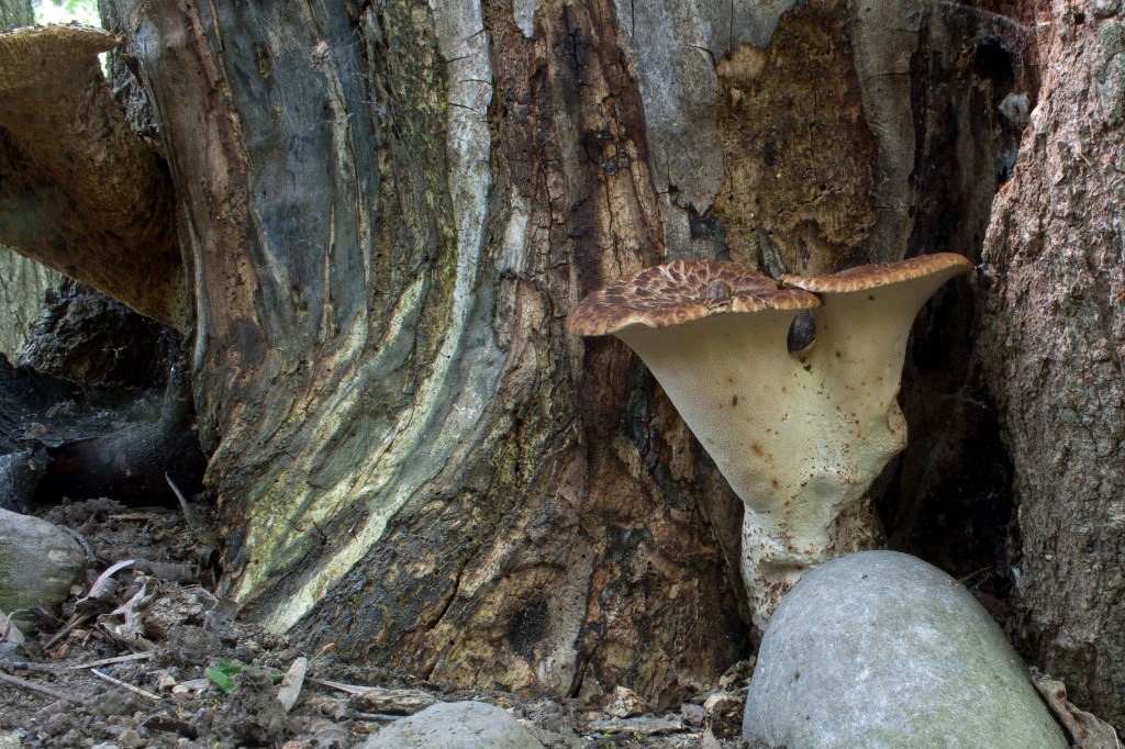 A large mature Dryad’s Saddle growing at the base of a Manitoba Maple (Box Elder) tree in a Black Walnut / Black Locust forest, ON (photo by Nina Munteanu)