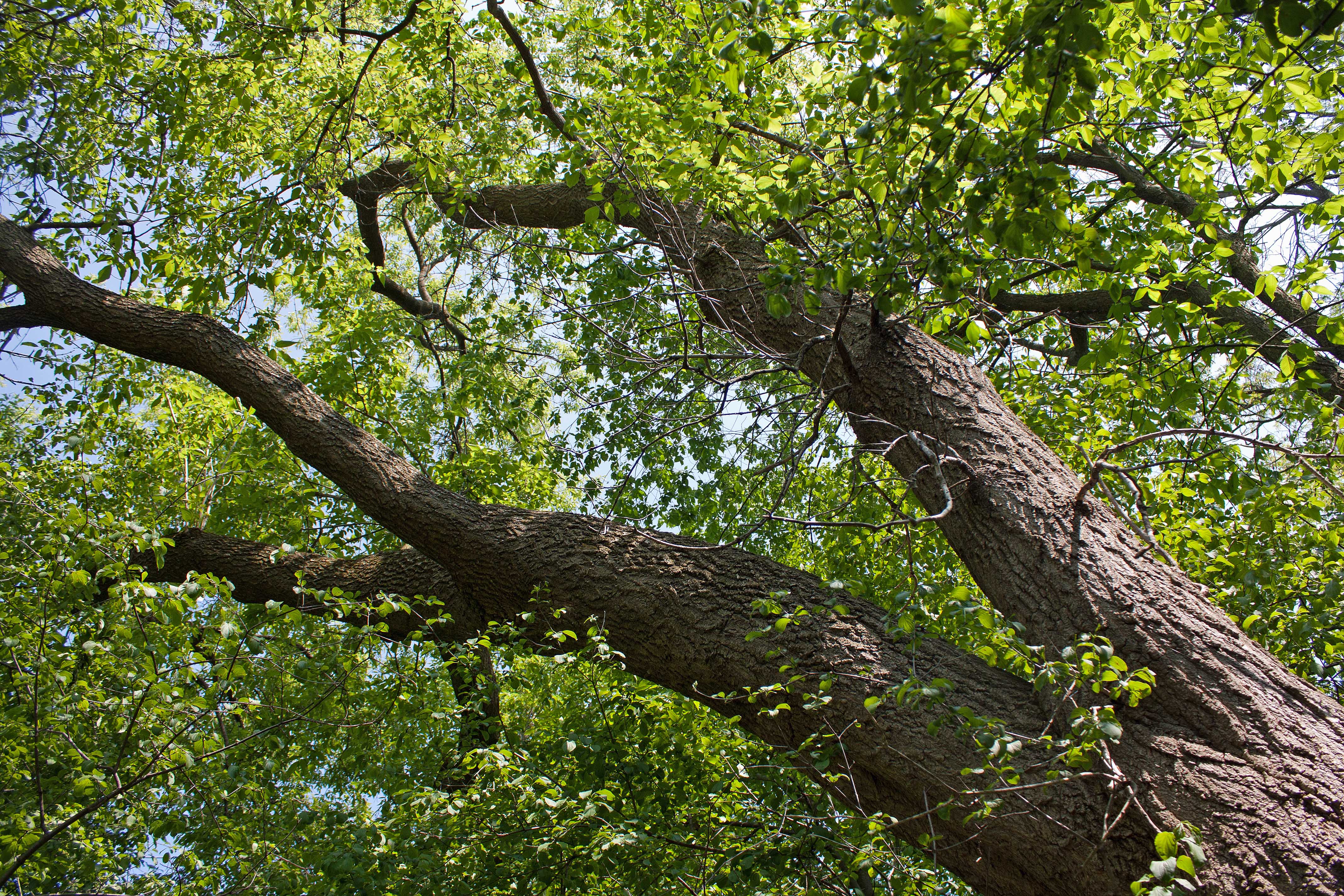 Looking up at Dryad’s Saddle mushroom on Manitoba Maple, showing pores on underside (photo by Nina Munteanu)