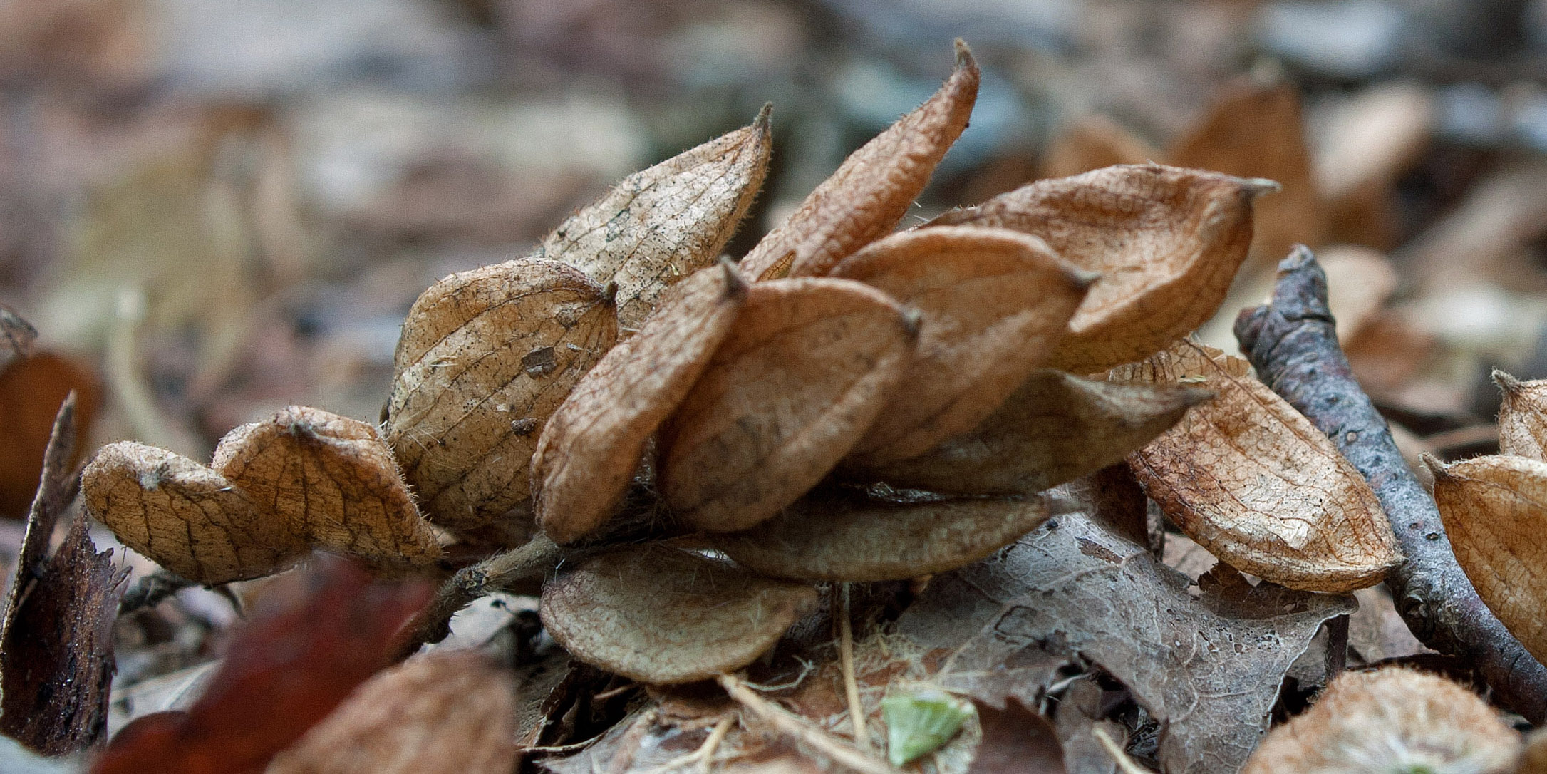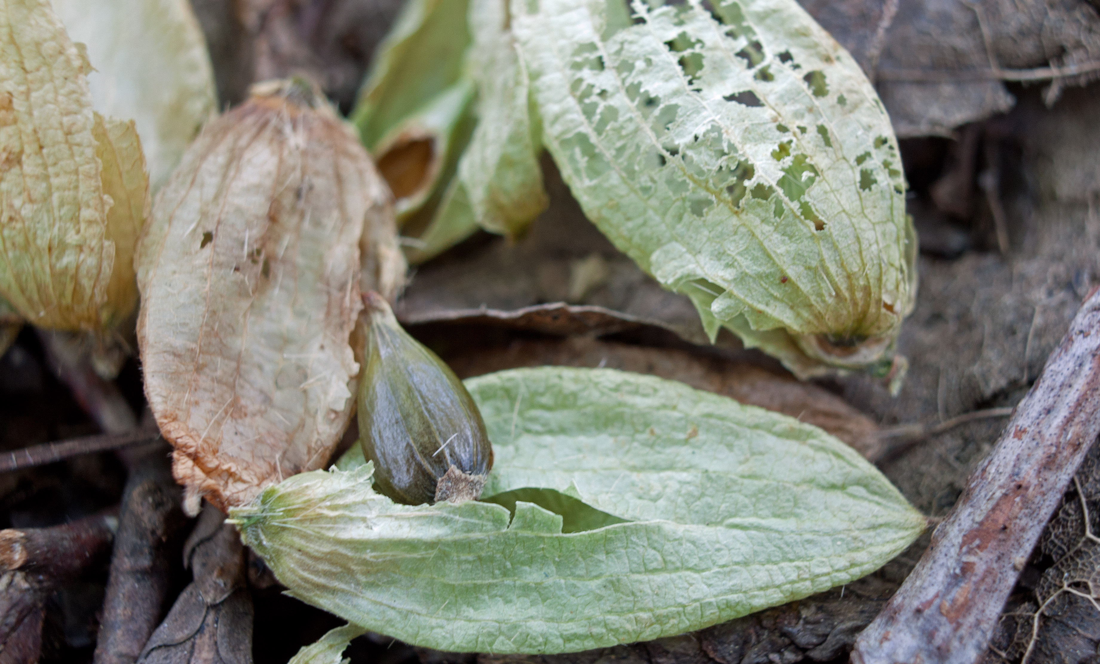 Additional diagnostics to tree bark include “chickens feet”-looking catkins; beech-like simple and pinnately veined leaves with small teeth or serrations; drooping clusters of papery ‘hop-like’ fine-haired bladders (involucres), each sac holding a pumpkin-like nutlet inside. The bladders turn brown and papery in the fall but the seeds inside stay a dark green.