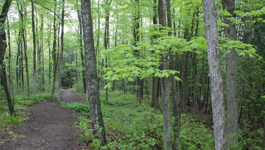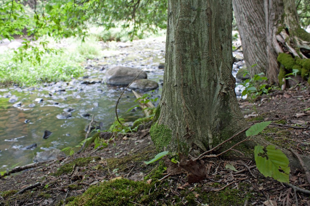 The American Hop-hornbeam likes to grow in well-drained mixed shady forests, on damp hillsides and especially along the edges of streams. I’ve encountered it most often in the Carolinian forest by the river of the Little Rouge River woodland and in both the mixed deciduous-coniferous forest dominated by cedar-hemlock-pine in Jackson Creek and Trent Nature Sanctuary near Peterborough (on the northern edge of the Carolinian forest). I’ve seen them in a mix of black walnut, ash, birch, maple, beech and oak in the lowland by the river. Not sensitive to drought, the Hophornbeam will not tolerate flooding. According to Wildflower, it is also resistant to insects (except the gypsy moth), disease, wind, ice, and most stresses of urban living. However, it is very sensitive to salt (hence not so good in urban settings where salt is used on roads in winter).