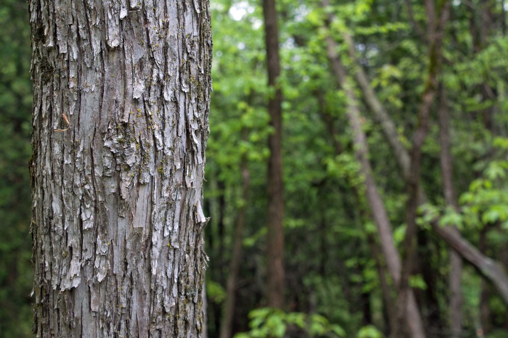 The American Hop-hornbeam (Ostrya virginiana) or American Hophornbeam, belongs to the birch family Betulaceae. It is actually easy to identify because of its telltale shaggy, peeling bark, which you can use year round (even in winter when leaves and seeds or catkins are not around or hidden under snow).