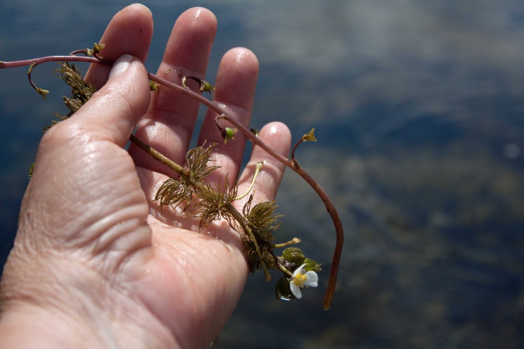 | Ranunculus longirostris (Water Buttercup or Crowfoot) OR Cabomba caroliniara (Fanwort) | Common | Small leaves. A sheath wraps around the base of the leaf where it joins at the stem. Contain poisonous, anti-bacterial substances used by native people as an antiseptic and anti-cancer treatment. |