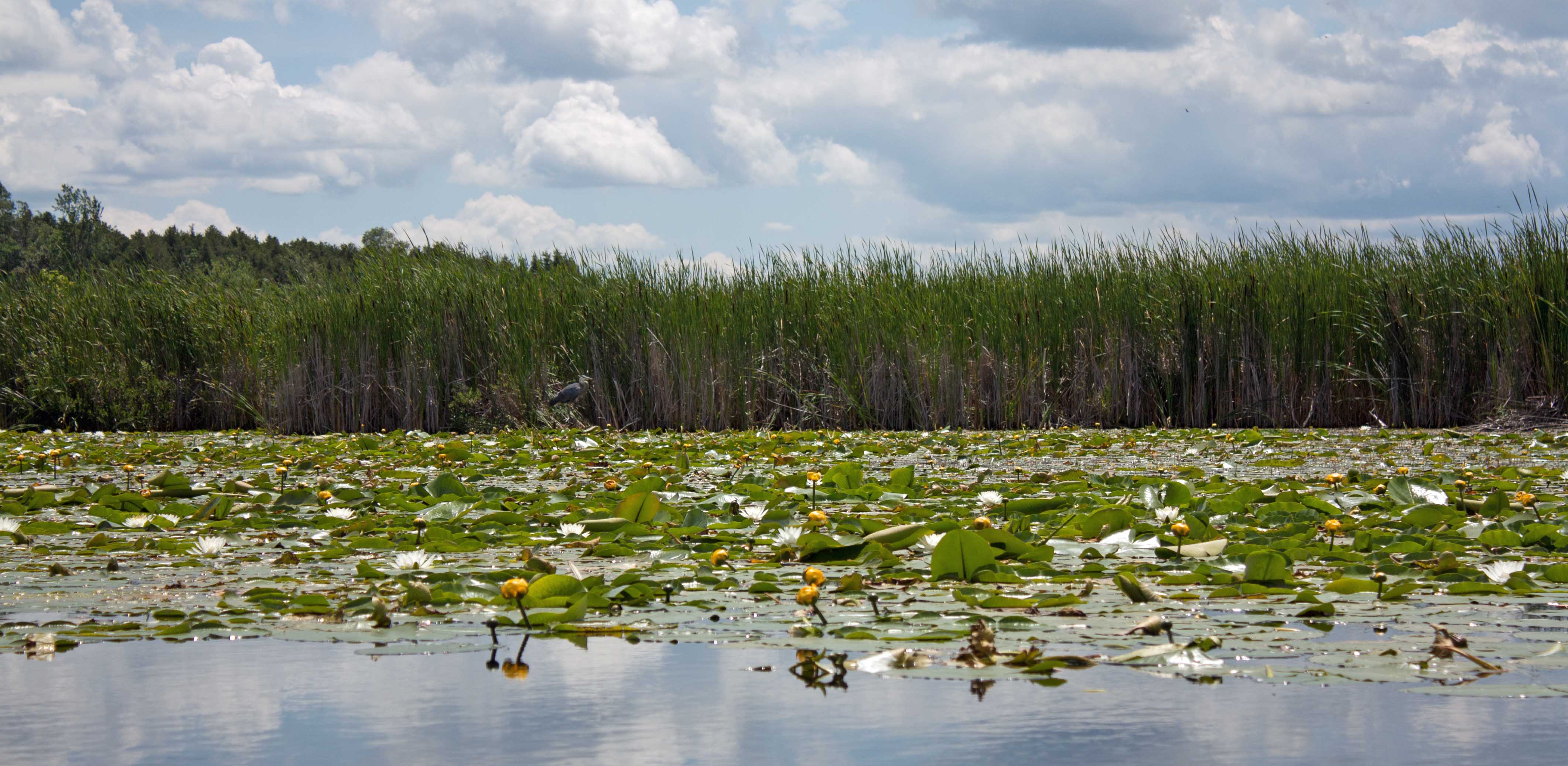 The Kawartha Stewards Association suggest that “no management may be the best option. Depending upon local conditions and regulations, one might extend a dock out into deeper water, or use a swimming platform, thus mostly avoiding the weed beds rather than disturbing them.” They note that marsh communities also protect the shoreline from erosion by slowing wind and wave currents.