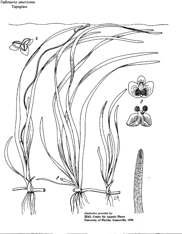 | Vallisneria Americana (Tape Grass) | Abundant | Common, native and abundant in the Kawartha Lakes. All leaves originate from one point on the lake bottom, veins darker/meatier in the centre of the leaf. Plant spreads by underground roots and often connected to other plants. |
