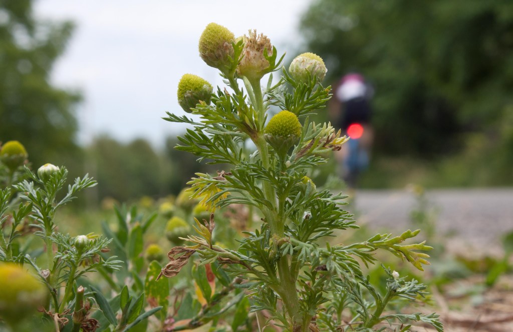 Pineapple Weed (Matricaria discoidea) or wild chamomile is a low-growing edible that seems to prefer the compacted well-trodden soils of path or road edges. These diminutive herbs with cone-shaped green-yellow flower heads and frilly leaves are easy to identify. The frilly leaves are first to show up in spring and by early June are festooned with button flower heads that make an exquisite tea or nutritious cold drink. Simply nip off the flowerhead (without the papery bracts) for a pleasant drink. Both flowers and leaves are edible, but everything except the flowers can be bitter.