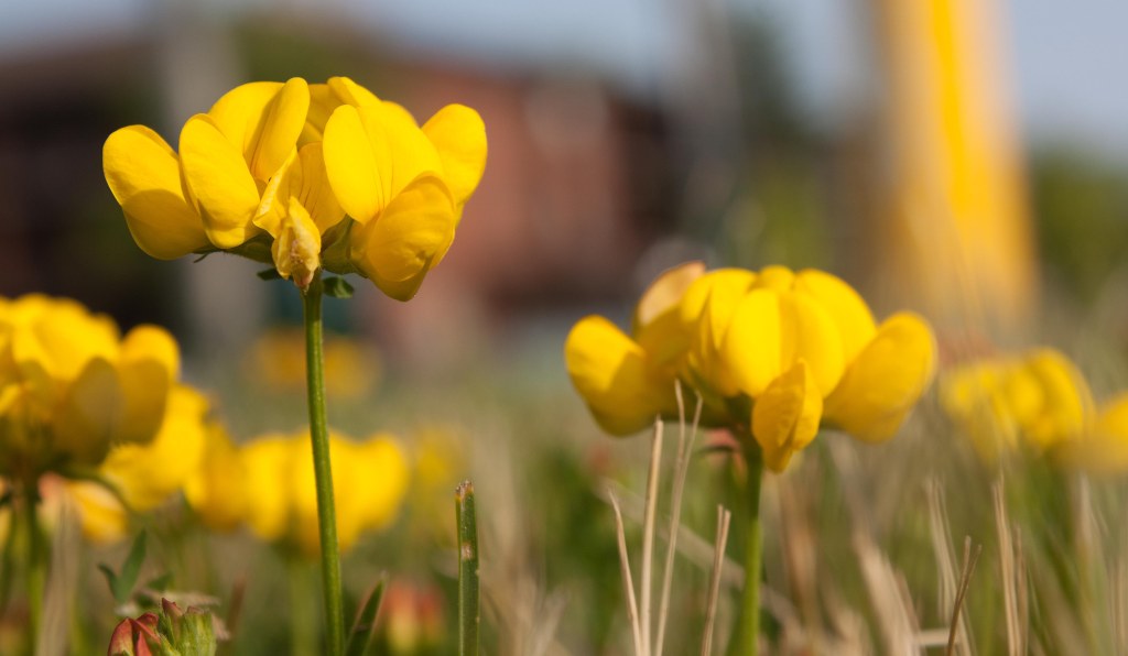 Bird’s Foot Trefoil (Lotus corniculatus), also called ‘bacon and eggs’, is a low-growing perennial herbaceous plant with yellow pea-like flowers and orange buds. Introduced to North America and commonly planted along roadsides for erosion control or pastures for forage, it spreads easily elsewhere.