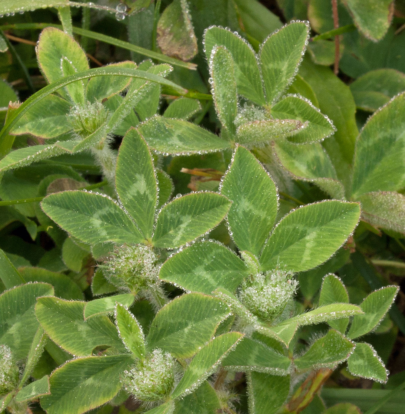 Black Medick (Medicago lupulina) thrives in tightly compacted soil such as walkways and roadsides, where I often see them growing almost a foot high. It is often confused with lesser trefoil (Trifolium dubium) or yellow suckling clover, which closely resembles it and grows in similar habitats, including lawns. Botany in Scotland provides excellent diagnostic criteria, with images, to tell them apart. One definitive way, which I used to distinguish my sample, is the leaf tip. The leaf of M. lupulina has a tiny triangular point at the end of the main vein, which is described as ‘apiculate.’