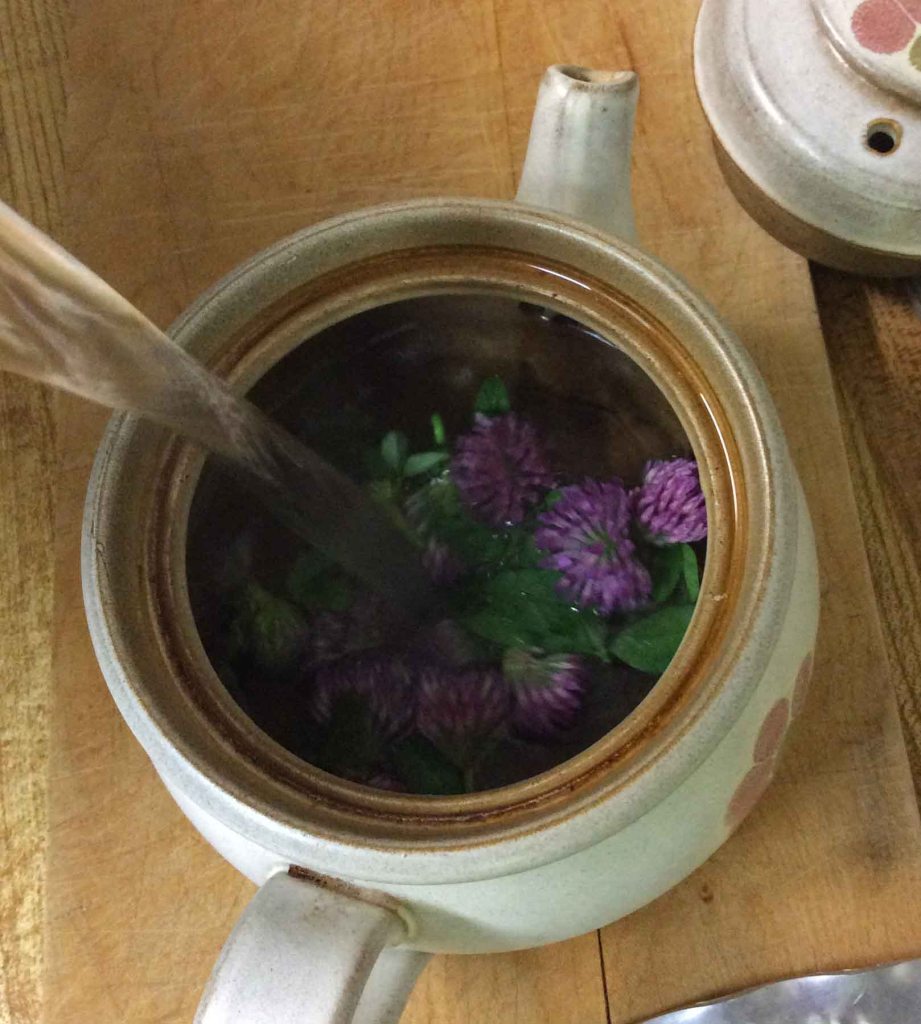 Red Clover (Trifolium pratense) is an edible and fairly common perennial in temperate climates that span from the tundra of the Arctic Circle to the meadows of Central Asia. Kate on Delishably provides a list of 25 edible flowers and describes red clover tasting sweet and slightly anise-like. I make a wonderful fresh floral tea with the flower heads and leaves. It is high in vitimin C, B-complex, phosphorus, potassium and calcium, beta-carotene, inositol, bioflavonoids, biotin, and choline.