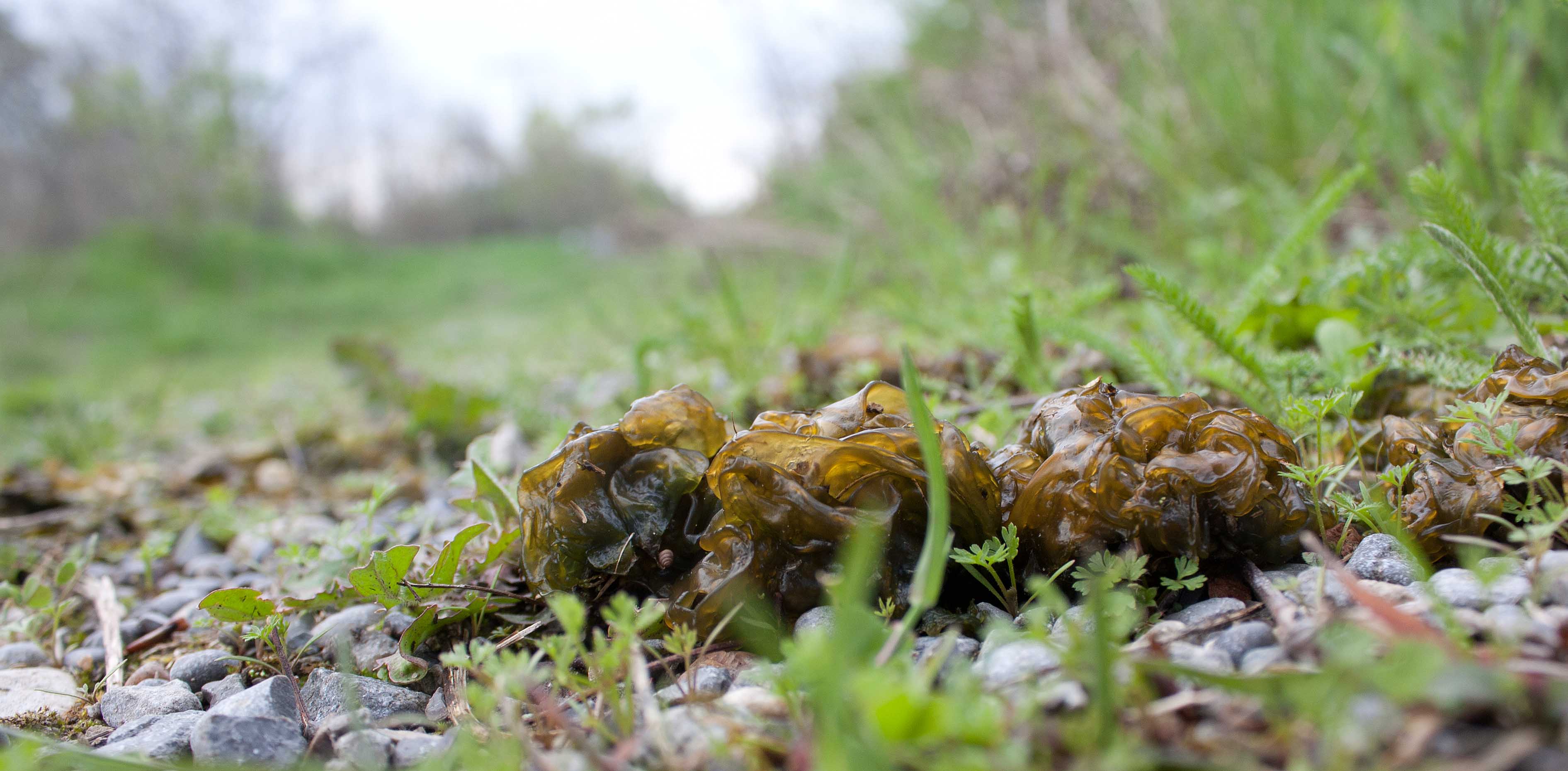 “Poo”-like blob of Nostoc commune on gravel road after several days of rain in spring, ON (photo by Nina Munteanu)