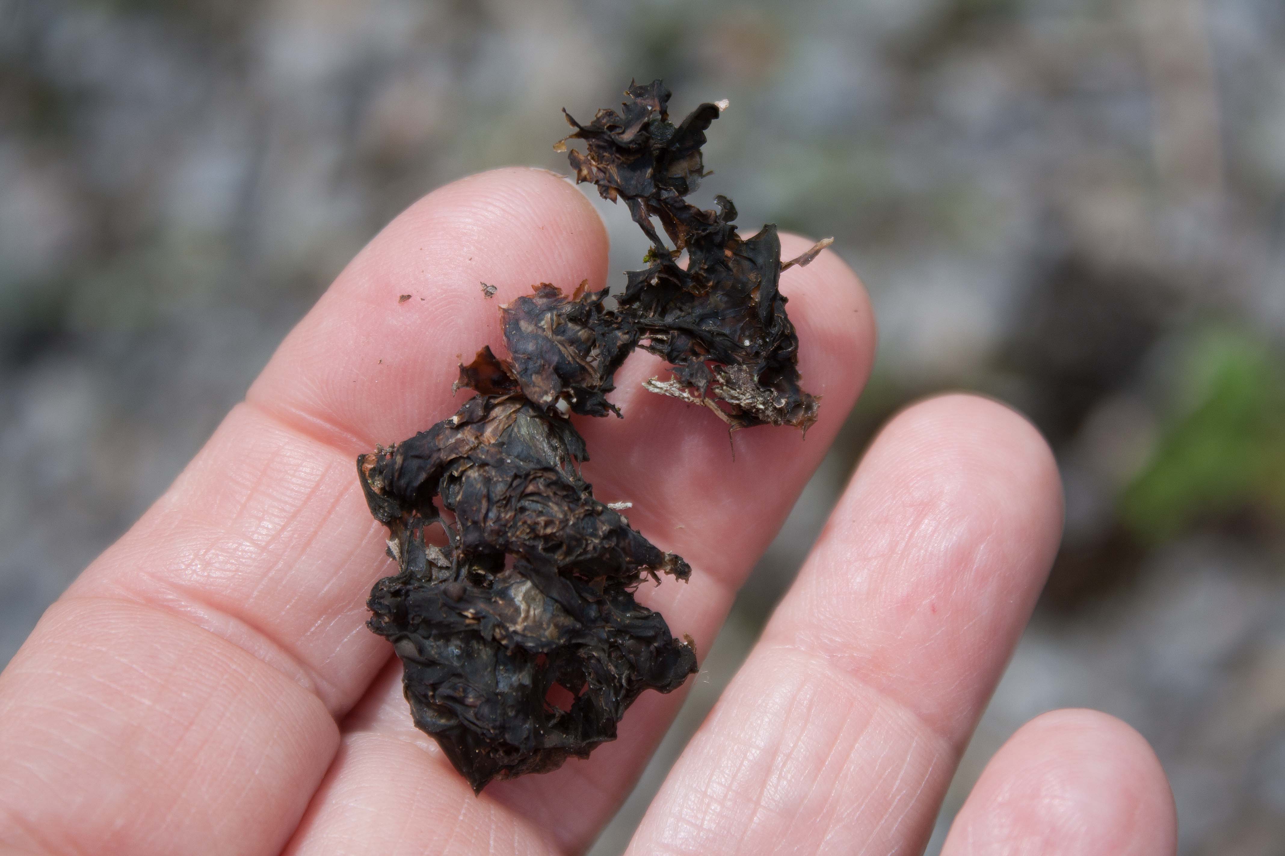 Friable blackened dehydrated Nostoc commune after two days of sun (photo by Nina Munteanu)