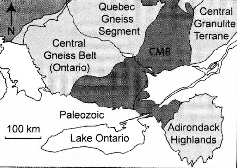 Moretton, K. 2007. “Delineating the geometry of the Central Metasedimentary Belt Boundary Zone of the Grenville Province: Nd isotope evidence of a failed back-arc rift zone between Minden and Bancroft.” PDF. Semantic Scholar.