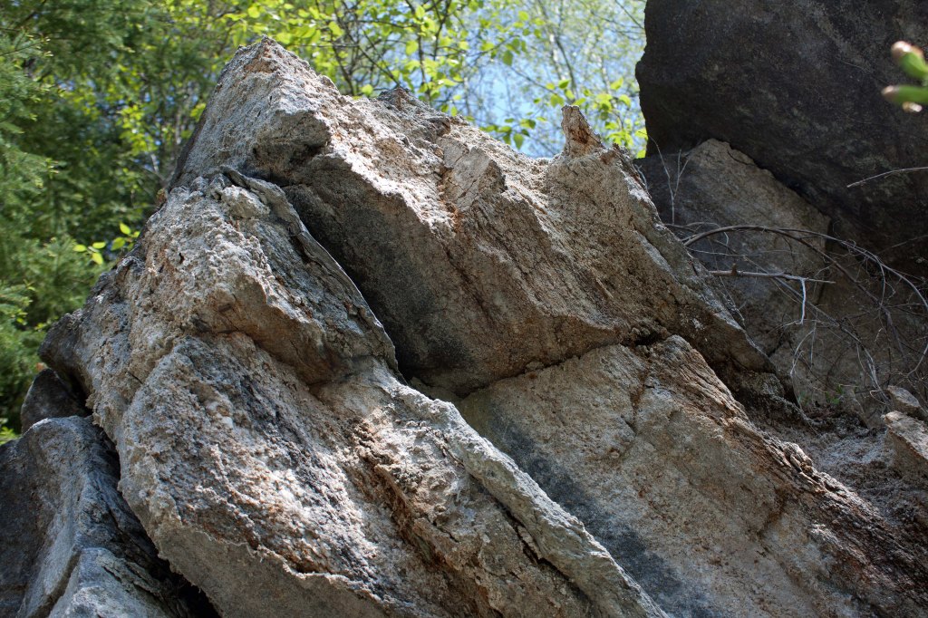 My drive to Gooderham took me over the Canadian Shield—an area of ancient Precambrian igneous and high-grade metamorphic rocks that formed over 3 billion years ago through glaciation, erosion and plate tectonics (movement and collision of the Earth’s outer crustal plates). In a process called “orogeny”, collisions of this jigsaw puzzle of crustal blocks (known as “provinces”) squeezed and welded rock together, deforming them and metamorphosing them and creating a belt of younger rock where the blocks collided. The huge pressures thrust the plates upward, creating huge mountain ranges. One of the largest was the Grenville Orogeny, which created mountain ranges at least as high as the Himalayas called the Grenville Mountains. Spanning from Quebec through Ontario and down the eastern side to Texas, the Grenville Mountains were possibly the largest mountain range created on Earth. A combination of erosion and glaciation then wore down these ancient mountains.