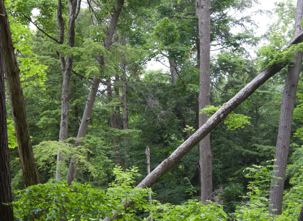 Despite the risk of a summer thunder storm, I went on my planned hike to the Mark S. Burnham forest. I’d already packed my sushi-lunch, a clementine, my camera and tripod. So, I threw on my flimsy raincoat and went, not caring if I got wet. It was June, the forests were flush green, and everything was astir…
