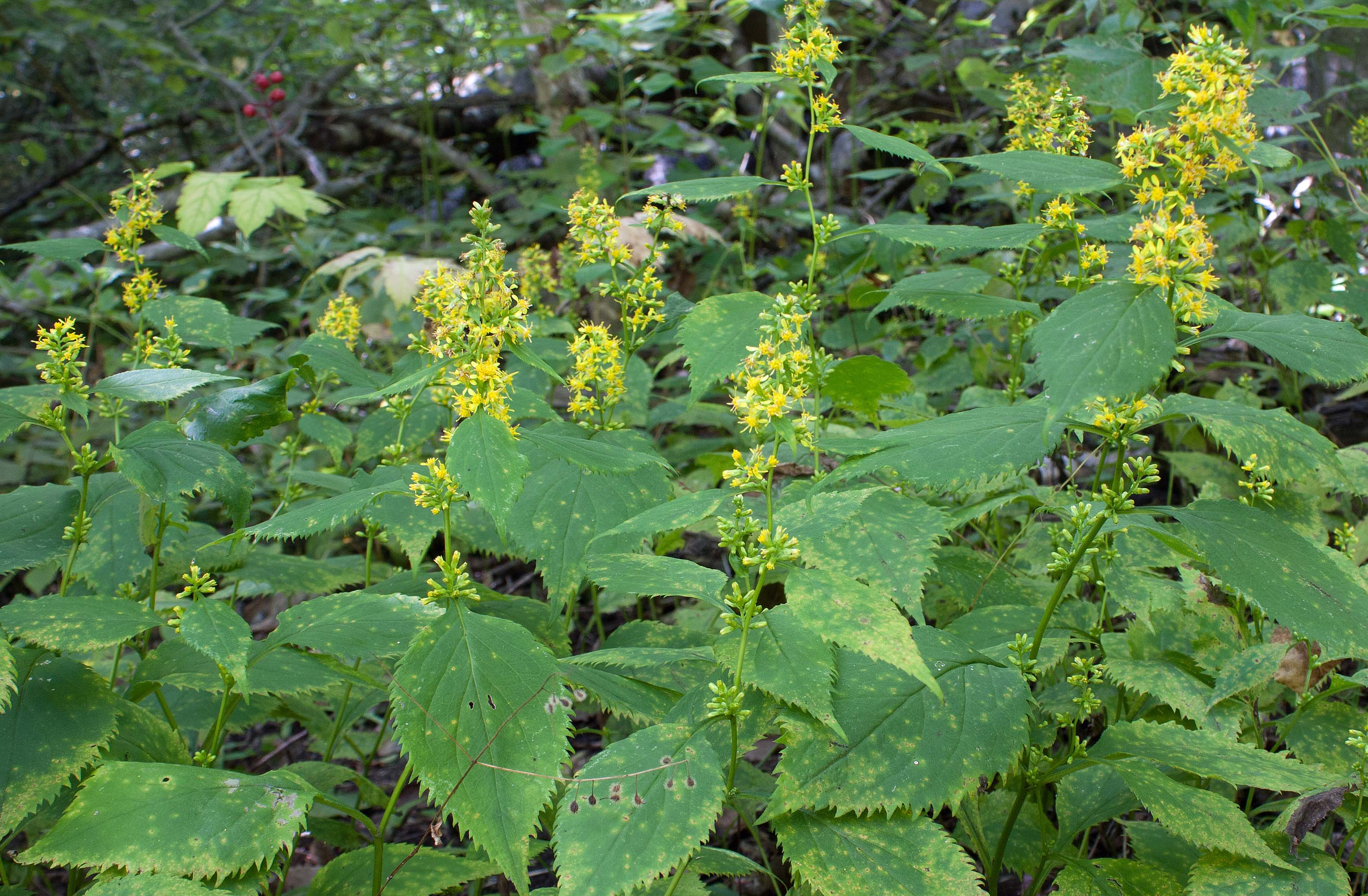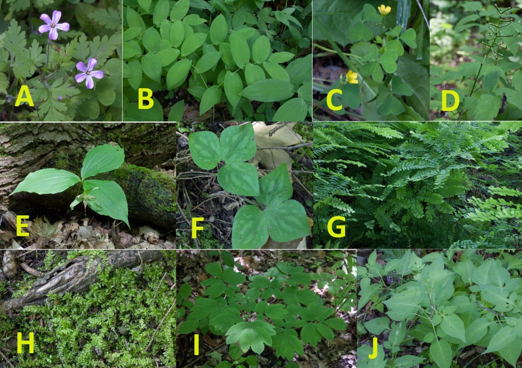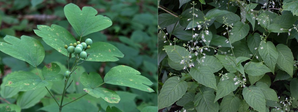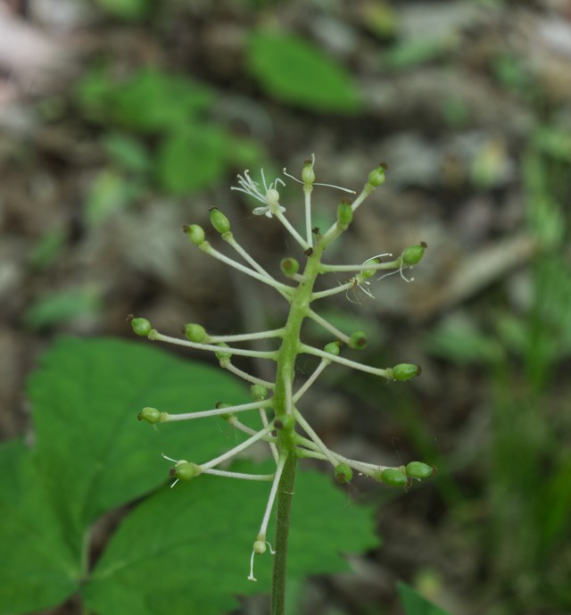 Instead, I took pictures of the understory vegetation and forbs. I saw lots of blue cohosh (Caulphyllum giganteum), its eventual blue berries still green, and enchanter’s nightshade (Circea canadensis), not in the nightshade (Solanaceae) family but in the evening primrose family.