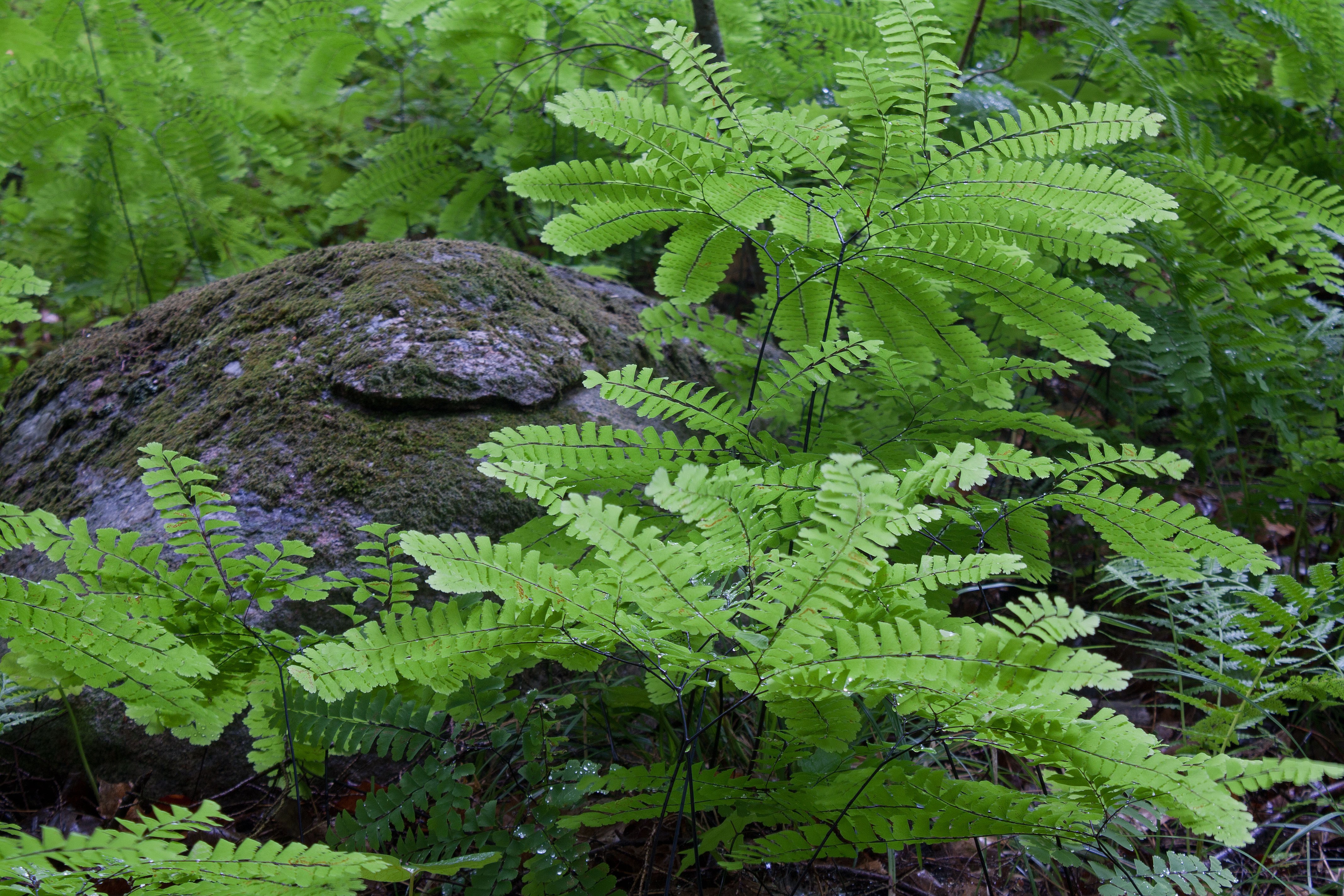 The forest floor also harboured several ferns, including the northern maidenhair fern (Adiantum pedatum), which I’m told was once the most abundant fern in Southern Ontario; but it has declined due to loss of its preferred habitat of moist, rich shaded soil.