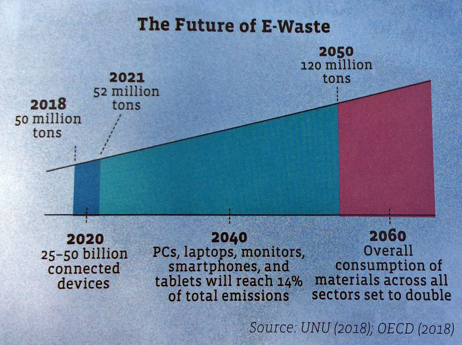 Growing Problem of E-Waste: Gonzales Monserrate notes that data centres drive demand for rare metals (e.g., cobalt, lithium) that precipitate child labor and other atrocities. “The average lifespan of a server in these data centers is only two to five years,” he adds and notes that only 20% of electronic waste is recycled annually. “Most ends up in e-waste graveyards in the Global South, where salvagers smelt down their valuable components, toxifying local soils, watersheds, and their own bodies in the process.” This is ripe material for a science fiction eco-novel. And it’s already been written: Chen Qiufan’s highly evocative and disturbing Waste Tide.