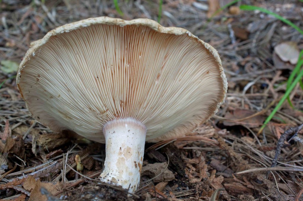 Mushroom Expert Michael Kuo writes that, “Russula brevipes … is essentially a fiction—a combination of several, or even many North American species that are in need of thorough study and revision.” Kuo goes on to say that mycologists have noted differences in ecology and morphology among the brevipes-like russalas for many years. “Some appear to be limited to conifers; others apparently associate with hardwoods. Some are western; some are Midwestern and eastern. Some have a mild taste, while others are weakly to strongly acrid. Some, when fresh, demonstrate a bluish line at the juncture of the stem and gills; others do not. Gill spacing ranges from nearly distant to very crowded.” He adds that varietal names have been applied to some as a result.