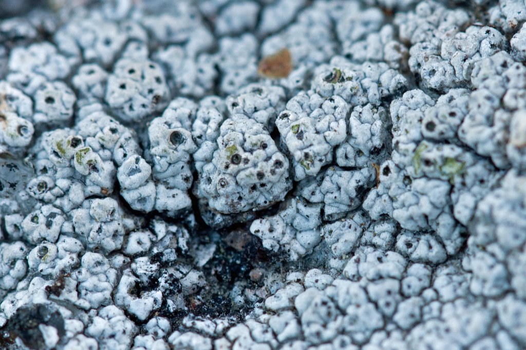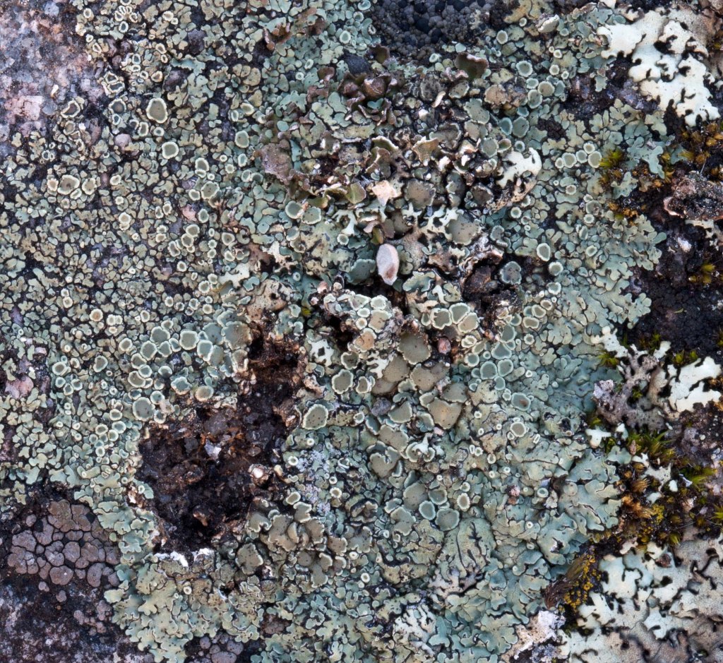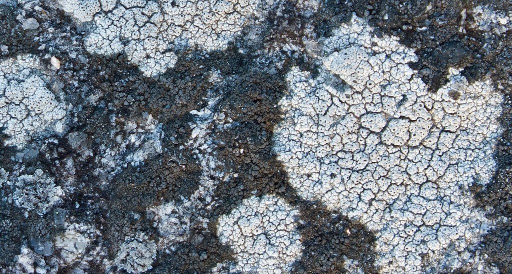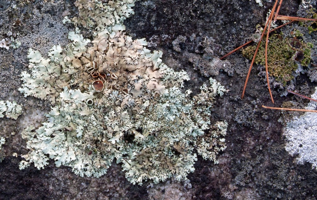 Rock provides a stable growth surface for long-term attachment of saxicolous lichen; their general texture and mineral content also affect the success and rate of lichen growth and spread. Part of this is obviously related to the lichen’s absorption and uptake of some elements. I’m told that on granite, lichen hyphae can grow several millimeters into the rock; on other rocks like limestone, their hyphae can reach up to 16 mm deep.