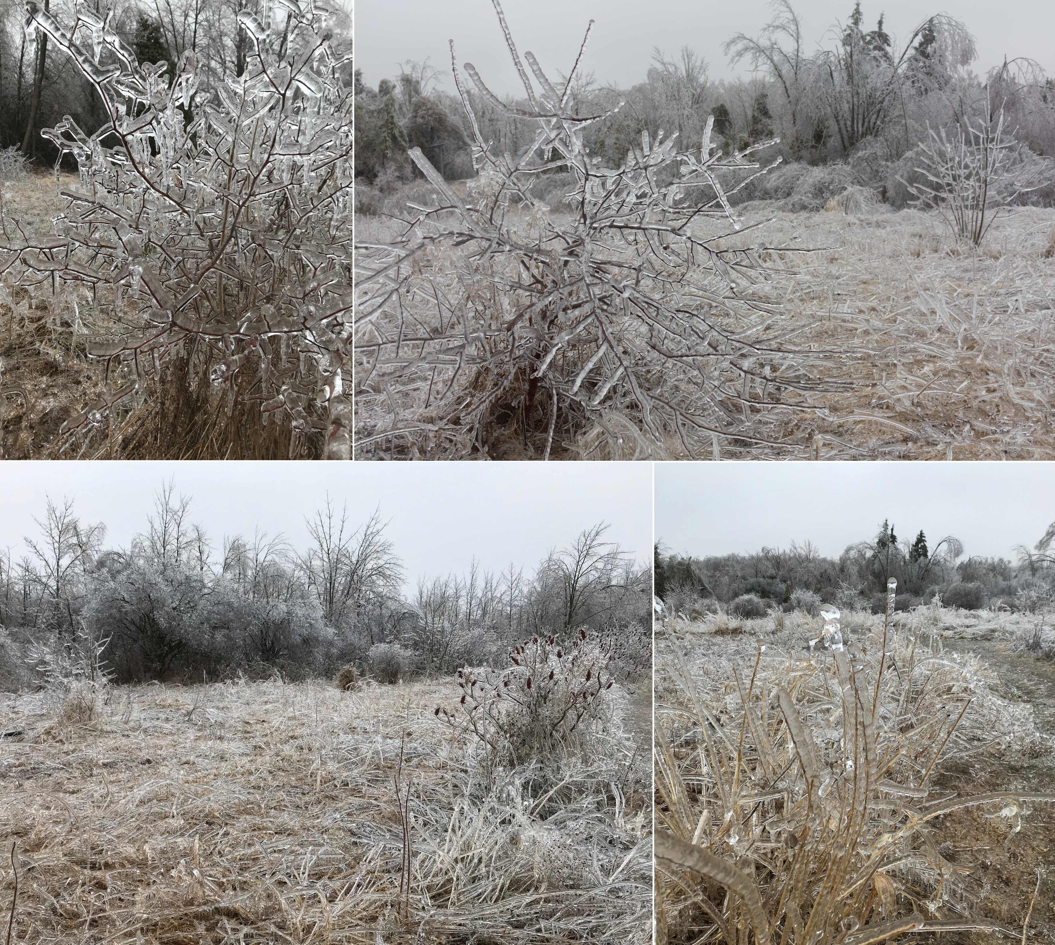 After two days of ice accretion, it grew mild and rained throughout the third day, thawing the ice off everything. The only evidence that remained of this natural calamity were the broken branches littering the ground. Otherwise, all had bounced back as the ice turned to water.