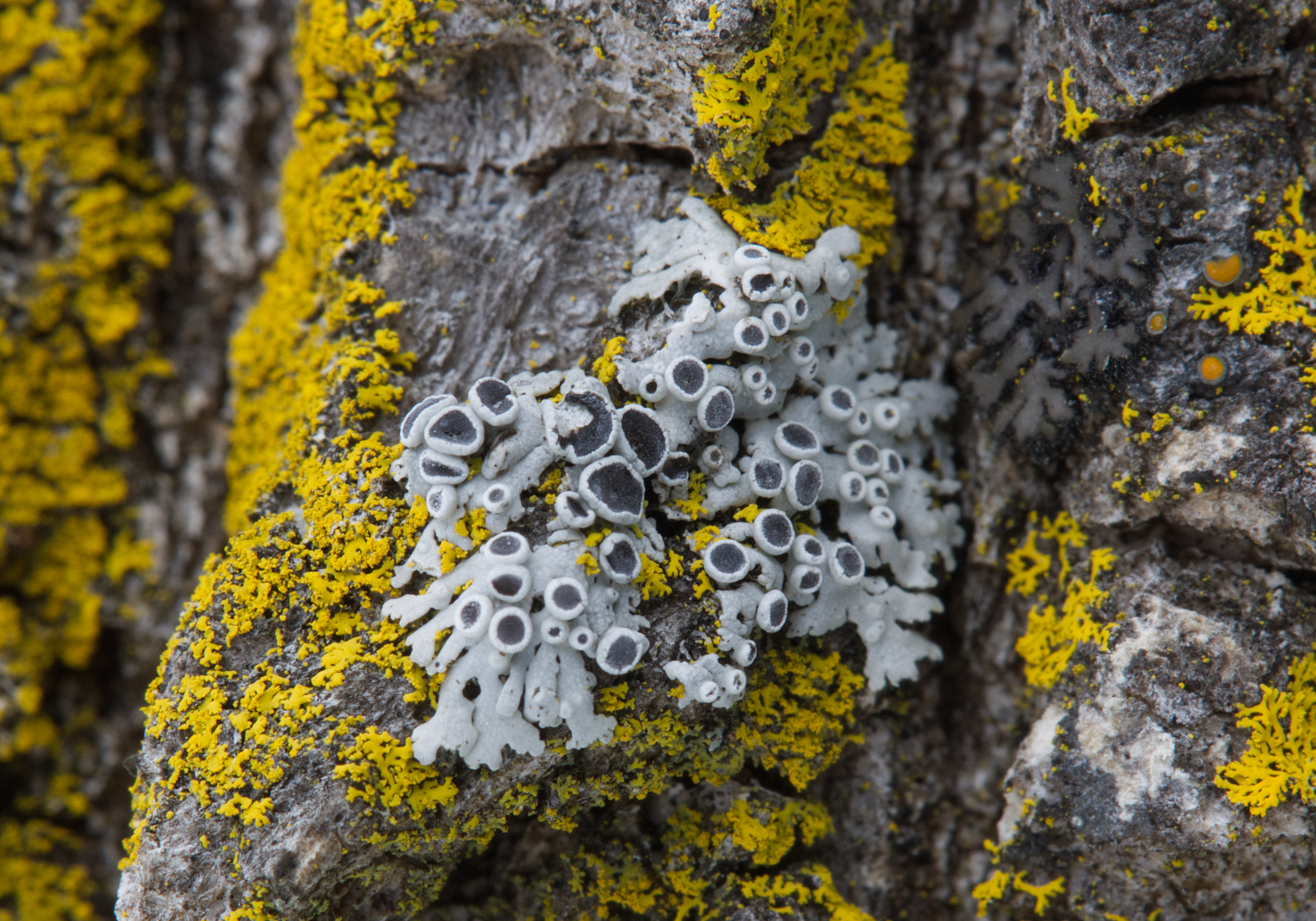 There were, after all, several corticolous lichen that I identified inhabiting the ash bark. These included: the Star Rosette Lichen (Physcia stellaris), Mealy Rosette Lichen (Physcia millegrana), Candleflame Lichen (Candelaria concolor), Common Tree Firedot (Caloplaca holocarpa), Brown-eyed Rim Lichen (Lecanora allophana), and Pom Pom Shadow Lichen (Phaeophyscia pusilloides), as well as the New York scalewort (Frullania eboracensis). Further research revealed the identity of this strange algal beast with an equally strange name.