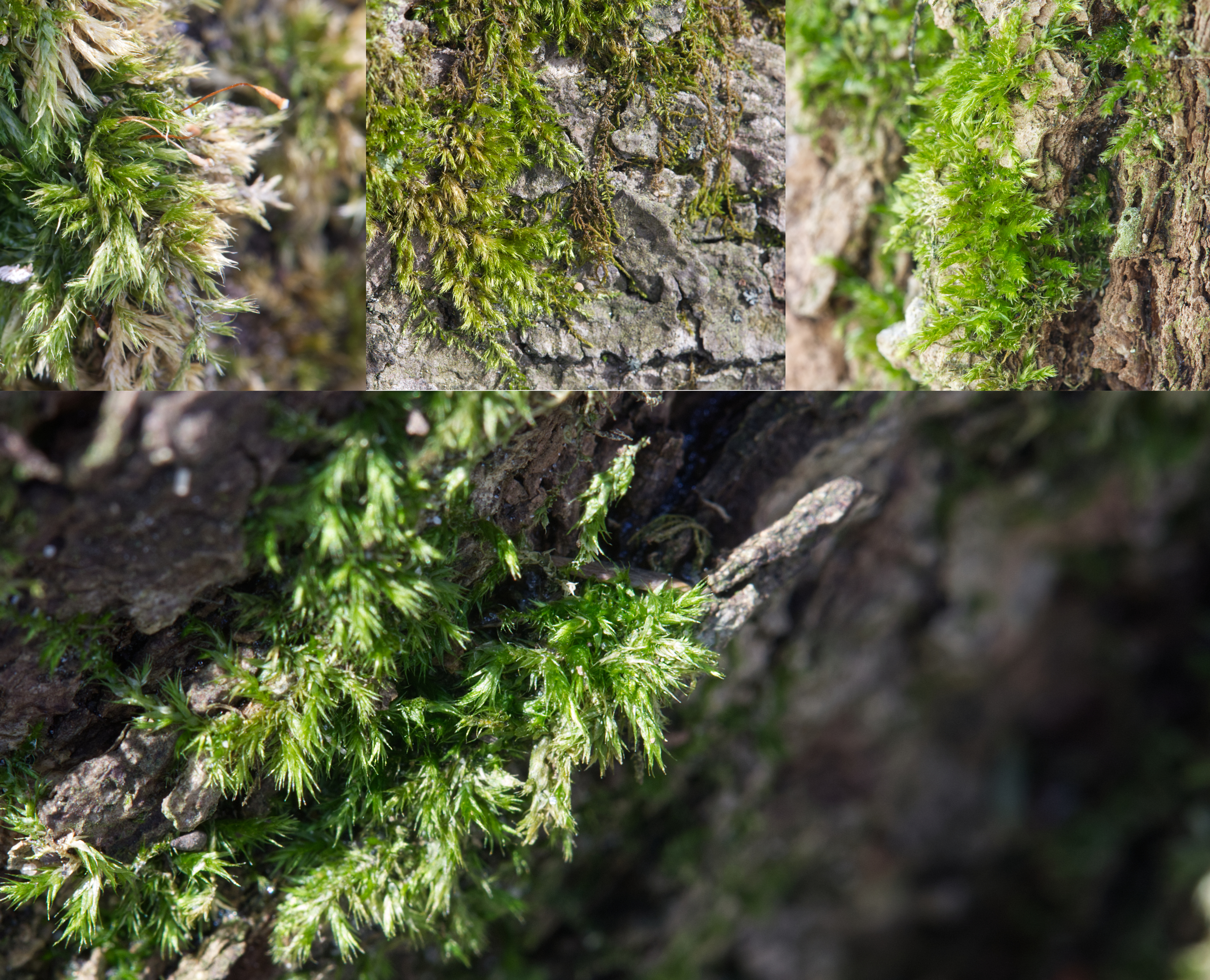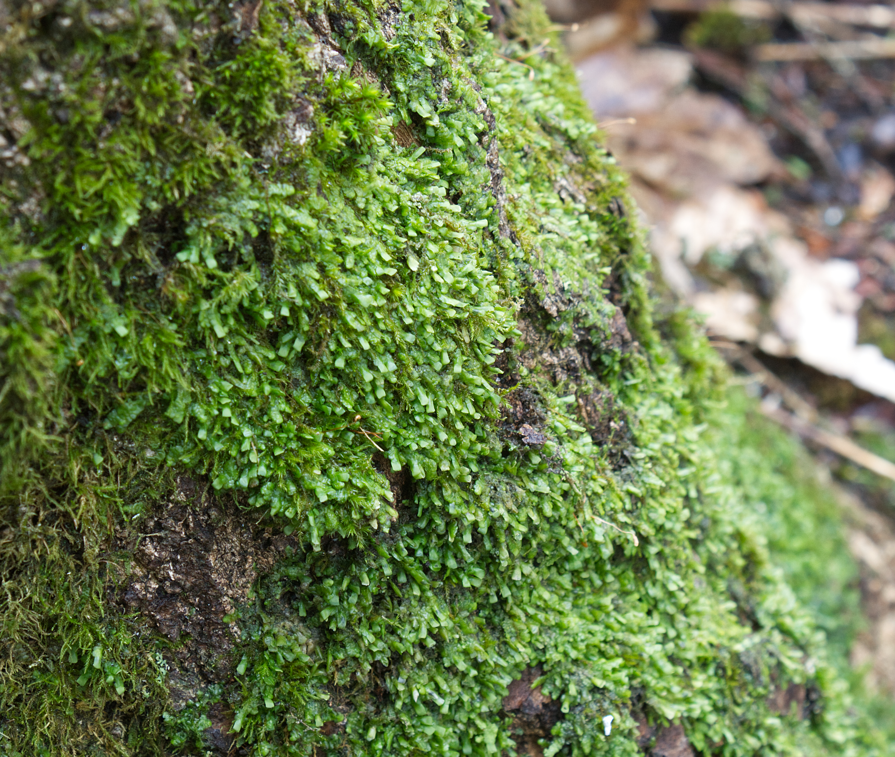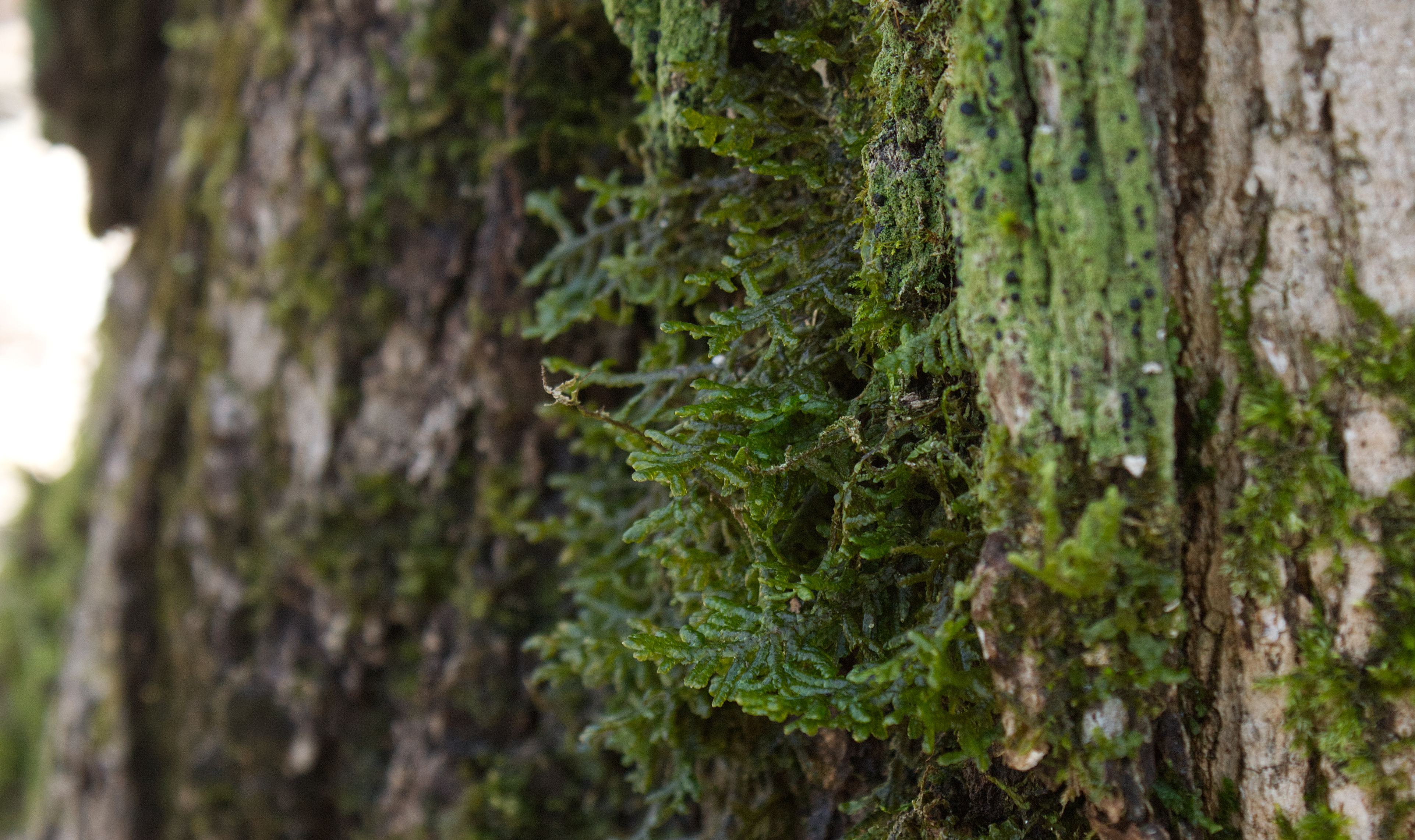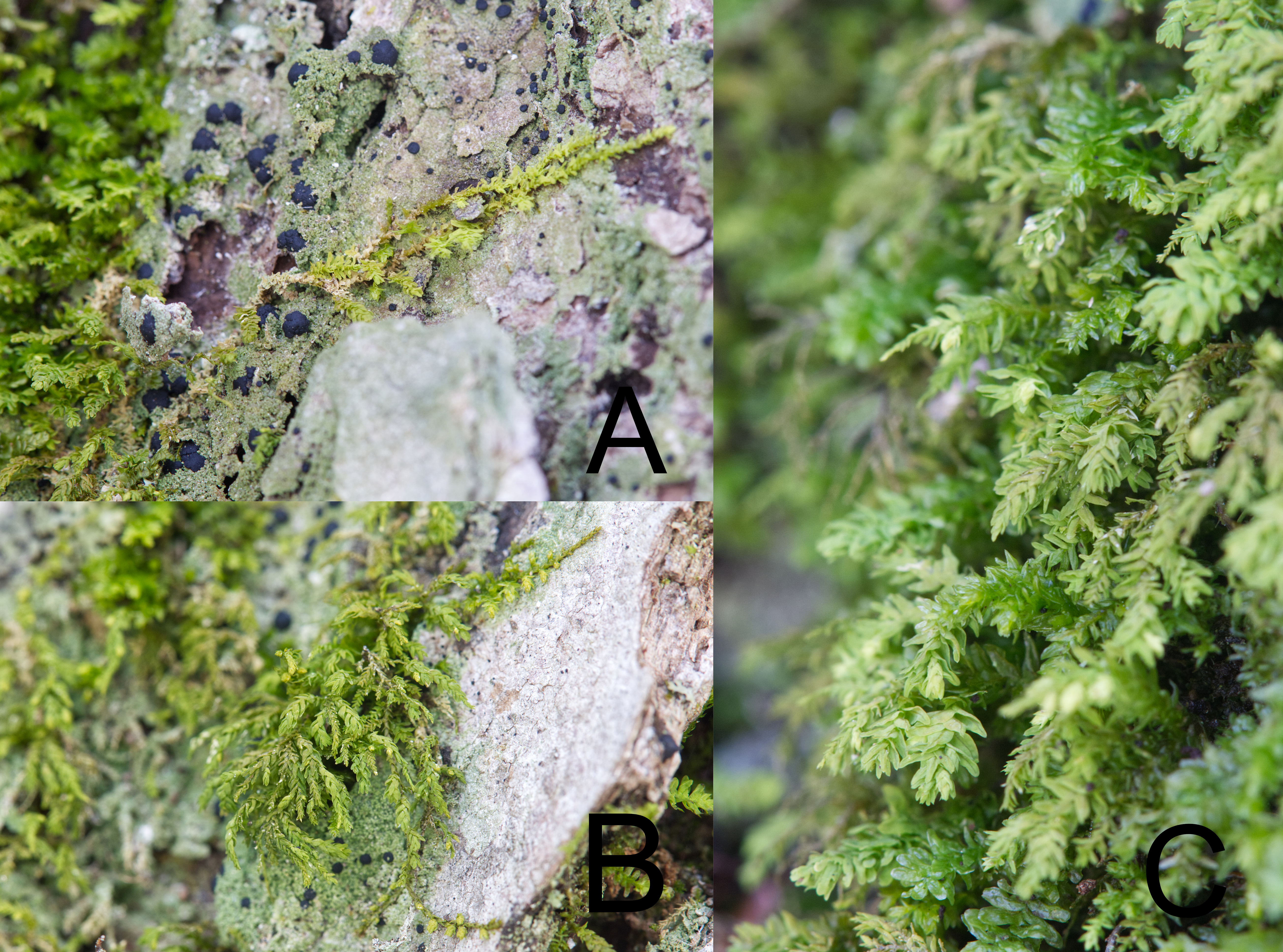 Co-dominant mosses included Tree-skirt Moss (Anomodon attenuatus), Shingle Moss (Neckera pennata) and Dented Silk Moss (Plagiothecium denticulatum).