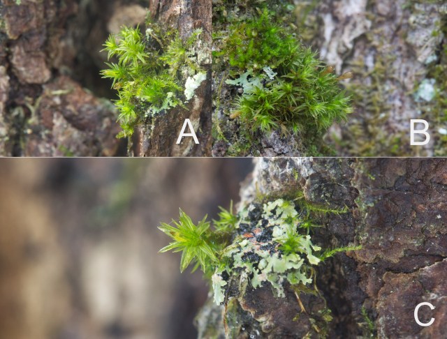 Vertical stratification of common mosses on an old tree (image from Jenkins, 2020)