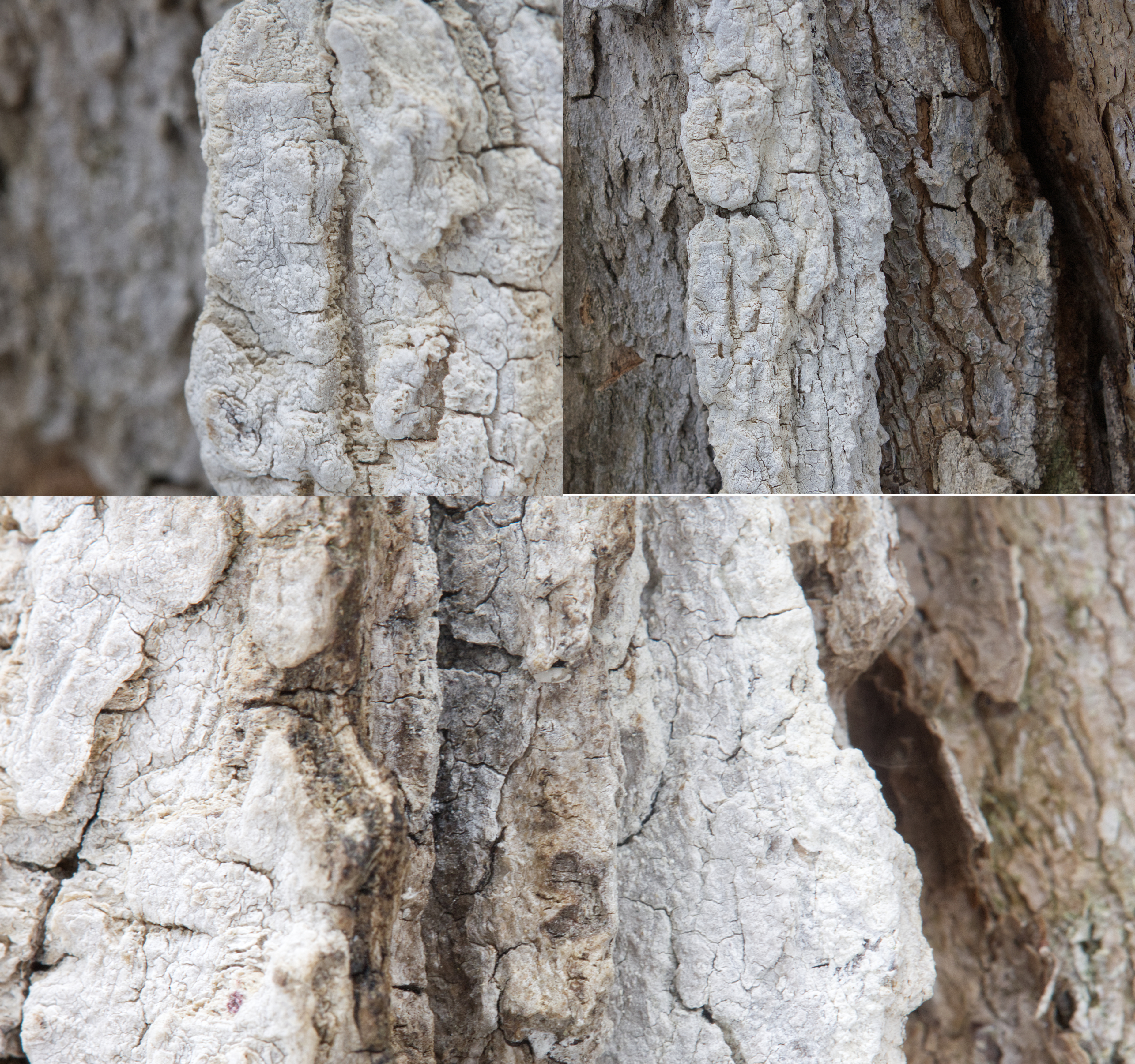 I found no script lichen on the nearby hemlocks. Not one. My initial thought was that this lichen prefers the subneutral pH of maples and beeches (pH of 4.9 to 7.5) over the more acidic bark of the hemlock (pH 3.4 to 4.0). Lichen can be fairly picky about the pH of the substrates they colonize. However, I then learned that birch trees, which also harbor script lichen, tend to have more acidic pH. This is why birches, while being deciduous trees, often support lichen communities more often seen on conifers (which usually have more acidic bark). Lichenologist Joe Walewski gives the example of Camouflage Lichens (Melanelia), typically found on conifers but also found on birch trees. All to say that acidity is not the restriction for the script lichen. It’s possible that hemlocks have some other chemistry in their bark that deters the script lichen from establishing. Walewski tells us that conifer bark is rich in organic resins and gums. Hemlock bark is also very high in tannins and terpenoids, secondary metabolites produced to defend against herbivores. These include α-pinene, camphene, sesquiterpenes, diterpines, and isobornyl acetate and diterpene resin. It could be any of these unpronounceable substances that deter this literary lichen from establishing on hemlock bark.