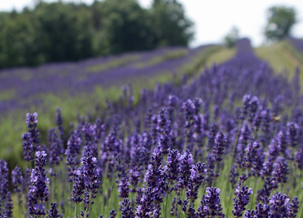 The aroma was subtle yet lingered as I walked the four acres of lavender, along stubby rows of deep purple that snaked up and into a rolling horizon. It was early enough for many of the flowers to still be in bud, displaying an intensely deep purple. This colour grows brighter as more flowers burst into bloom later in the month, attracting more and more honeybees. I was in a kind of aromatic heaven, accompanied by the constant hum of honeybees buzzing from flower to flower and the occasional flutter of a Red Admiral butterfly, flashing its bright blue-orange wings as it stopped briefly to gorge on the lavender’s nectar. The scent was an airy symphony of sweet floral with herbal, camphor-like woodsy undertones. I detected the mildest hint of rosemary and coriander.
