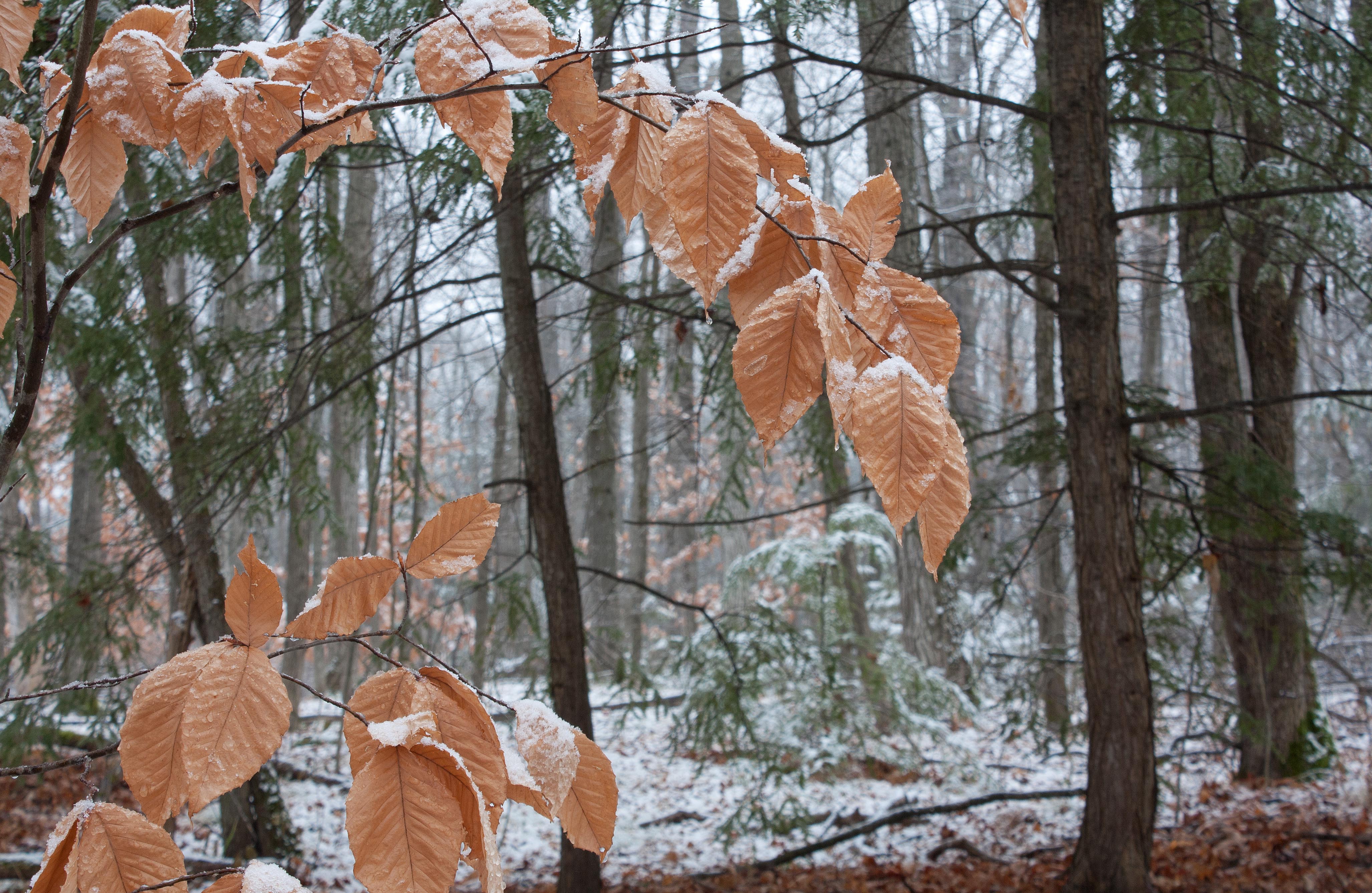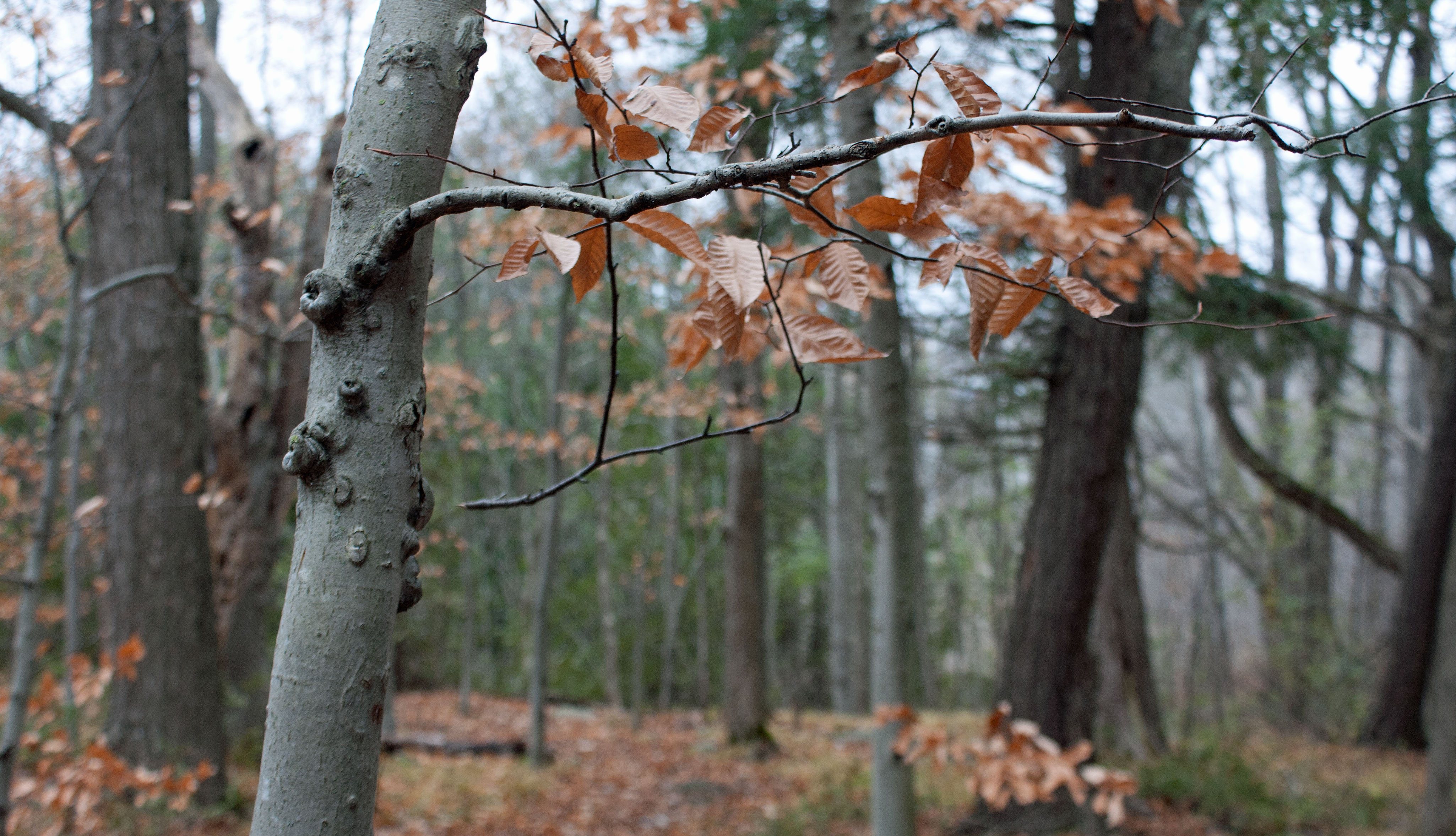 The American Beech tree (Fagus grandifolia) is one of my favourite trees. It’s not as stately or majestic as the tall oak tree or even the gnarly many-branched maple. This slender tree commands incredible grace and beauty with a proud smooth grey trunk that resembles slate more than wood. There is something rather elegant, even mysterious, about this handsome tree that stands singularly pale and smooth in an umbrous rough crowd—a tree that stubbornly holds onto its copper-coloured leaves in the cold of winter (called marcescence), long after its hardwood neighbours have given up theirs.