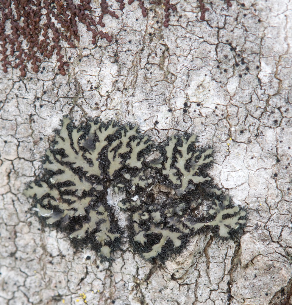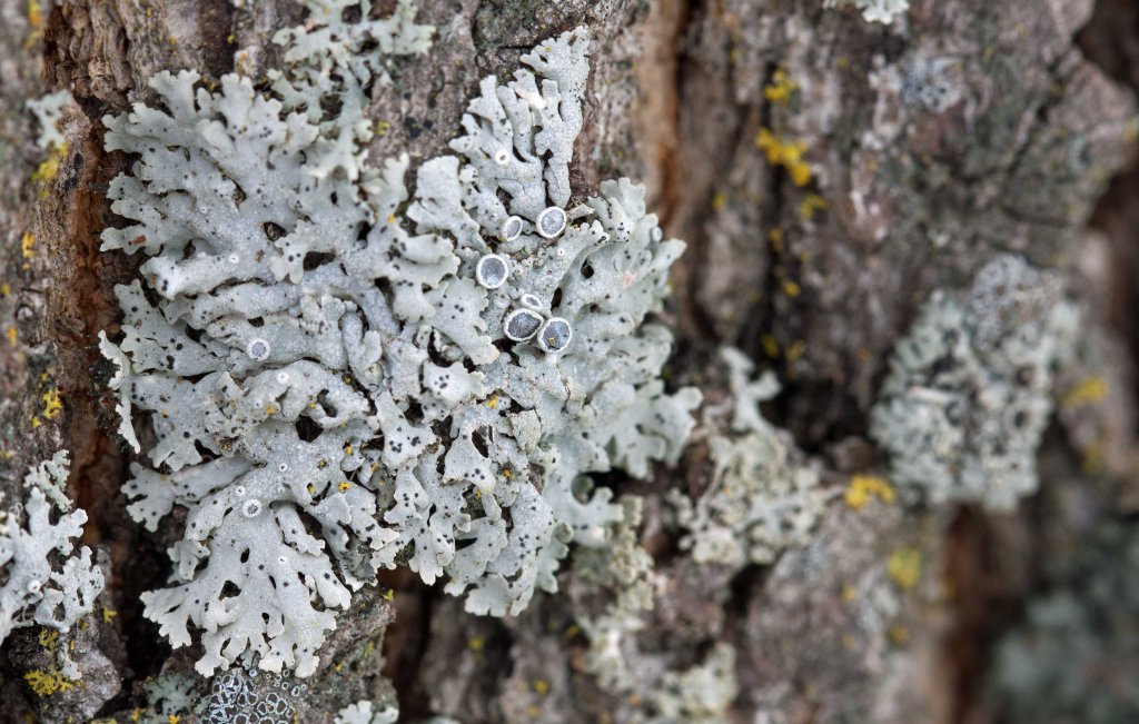 In a previous article I wrote about lichen stealing, algal swapping, and photobiont mining. These strange actions are apparently ubiquitous within the lichen world and they appear to play a vital role in lichen adaptation to varied and changing environmental conditions. “Association with a wide range of symbionts may help lichens survive under harsh environmental conditions,” write Moya and colleagues in their 2020 article in Scientific Reports. In their 2024 article in MycoKeys, Nimis and colleagues document how lichen that grow on lichen (lichenicolous lichen) regularly start as ‘parasites’, mining the host lichen for its photobiont, before finding their own preferred partner.